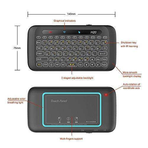 Mini Wireless Keyboard with Touchpad Mouse Combo,Meerveil H20 2.4GHz IR Leaning LED Backlit Multi-Touch Touchpad, USB Rechargeable Android TV Box Windows PC, HTPC, IPTV, PC, Raspbe