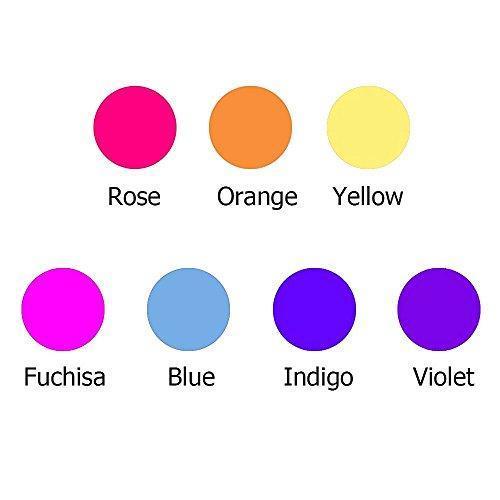 7 Assorted Colors: Rose, Orange, Yellow, Fuchsia, Blue, Indigo, Violet. Please pay attention that the yellow color is quite similar to orange color, please distinguish them under strong sunshine.