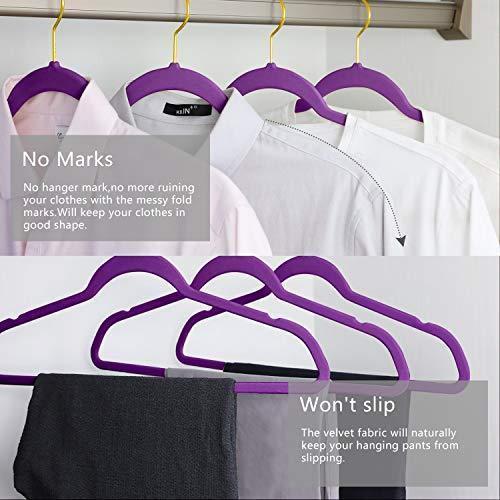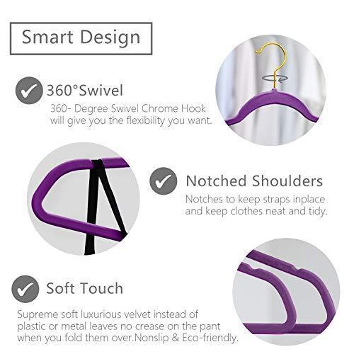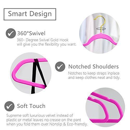 MIZGI Premium Velvet Hangers (Pack of 50) Heavyduty - Non Slip - Velvet Suit Hangers Pink - Gold Hooks,Space Saving Clothes Hangers (Pink) …