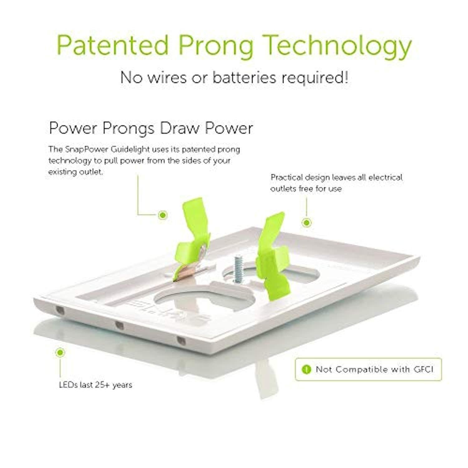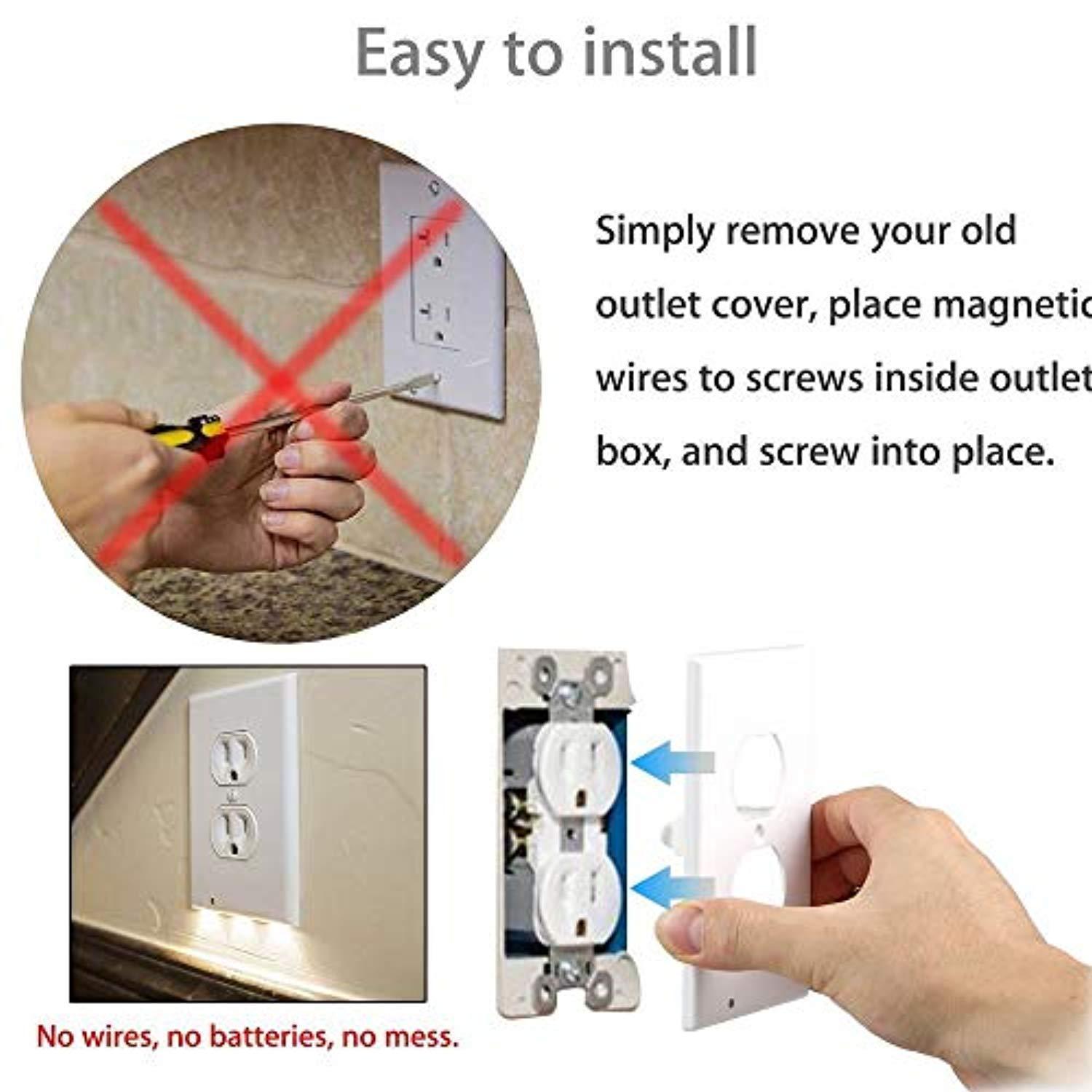 EASY INSTALL - You don't have to be an electrician or magician to install the Guidelight. It was designed for a truly simple, safe solution to the household nightlight. It does not require brackets, batteries, mounts, or wires. Just snapFREES UP OUTLETS - You can finally use all of the outlets in your house. Don't let standard, bulky night lights dominate your hallways, bathrooms or children's bedrooms anymore.ENERGY EFFICIENT - The Guidelight cover plate costs less that 10 cents per year to power. With just the right amount of light, you can sleep easy now.SAFE FOR CHILDREN - The Guidelight does not heat up like standard night lights, it does not have open bulbs or glass for kids to burn and cut themselves on.SATISFACTION GUARANTEE - With a money back guarantee and the best customer service around, you can buy easy. We have you covered, we have your back.