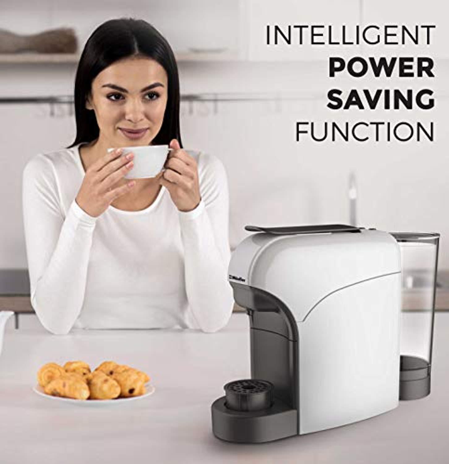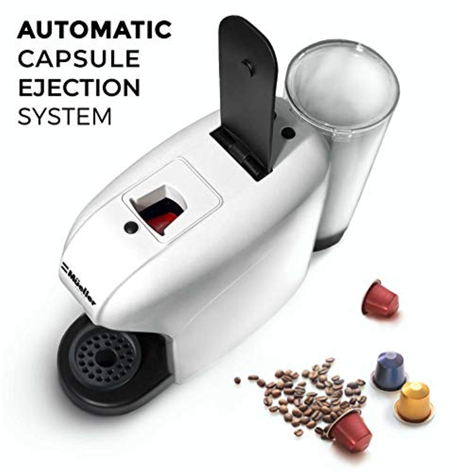 ☕ PREMIUM ITALIAN HIGH PRESSURE PUMP – Delivers up to 20 bar pressure which like premium professional machines allows for a barista-style result, unlocking the delicate flavor and premium aromas of each coffee capsule during the brewing process and creating an incomparably dense and unctuous crema. ☕ ULTRA FAST HEAT-UP SYSTEM - Mueller Espresso Machine only needs about 25 seconds to preheat, then you can get coffee immediately without preheating and within 10 minutes the energy-saving mode will switch off the machine automatically saving you electricity. ☕ EASY OPERATION - The one-touch buttons with two cup capacities Short and Long (Espresso and Lungo) can be reprogrammed to custom volumes and are backlit for ease of use. ☕ LARGE CAPACITY SMALL FOOTPRINT – With a small footprint taking up minimal counter space but a large water tank which is detachable, easy to clean and dishwasher safe, holds 27 fl oz/0.8 L water. ☕ EUROPEAN QUALITY – AMERICAN GUARANTEE - 100% 2 year warranty, 120V, 60Hz, 27 FL OZ/0.8L, 1400W, ETL approved product, Designed for use with Nespresso capsules.