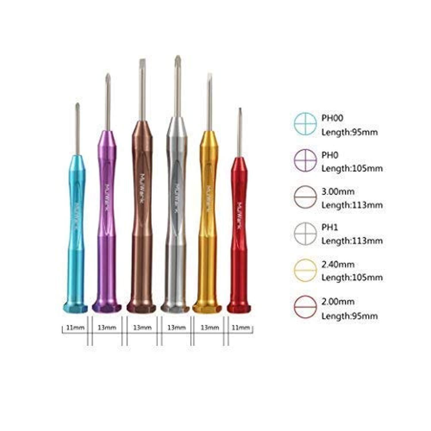 MulWark 6pc Premium Grade Magnetic Mini Flathead and Phillips General Micro Precision Head Small Screwdriver Set CRV Eyeglasses Jewelry Watches Electronics Computer Tools Repair Kit