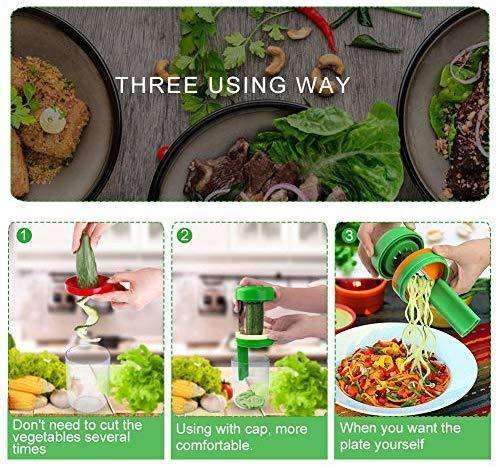New 4-in-1 Vertical Vegetable Slicer, Rotating Adjustable Blades, Heavy Duty Veggie Spiralizer with Strong Suction Cup, for Low Carb,Paleo,Gluten-Free Meals (Free Cleaning Brush) by Chugod