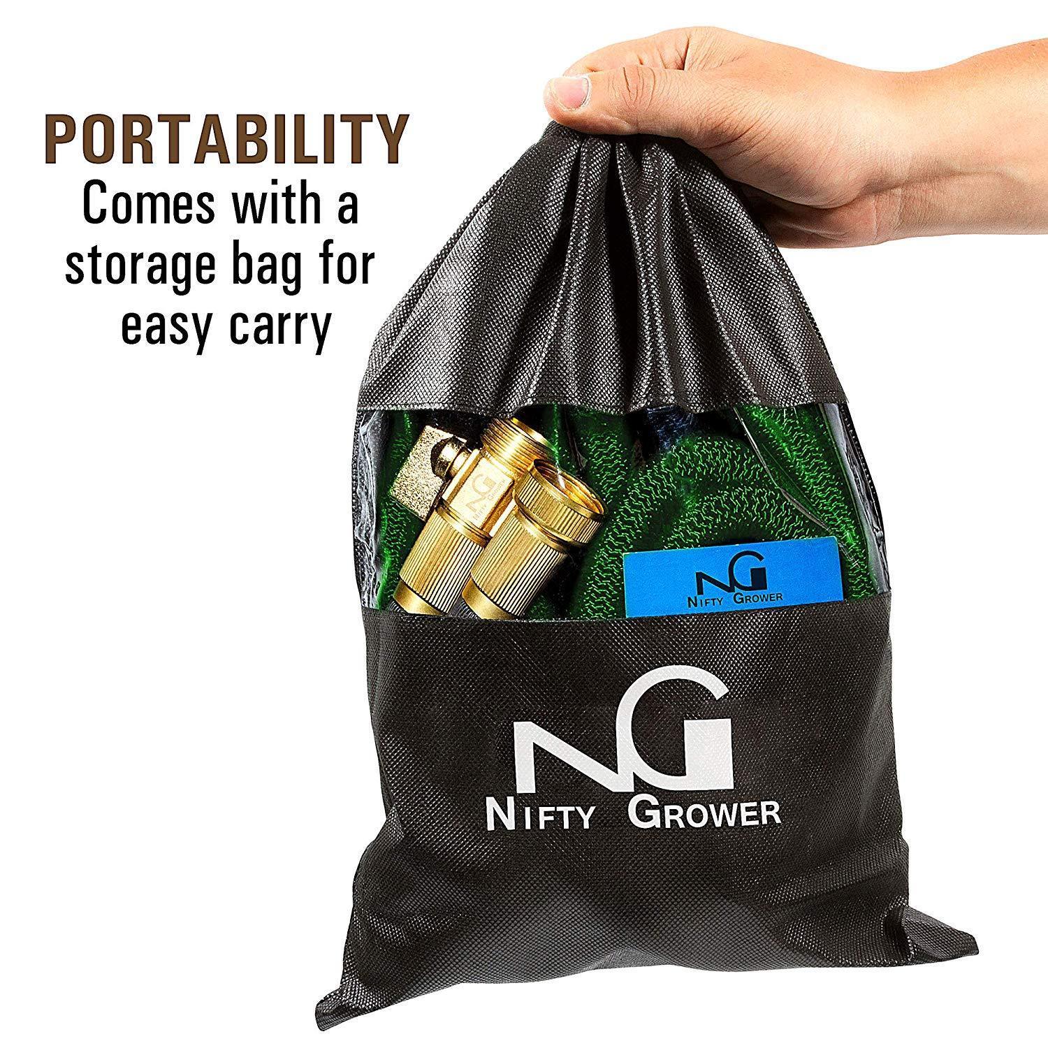 COMPACT AND LIGHT WEIGHT making it easy to carry or drag from one part of your yard to the next. When not in use, the hose contracts to 1/3 its in-use maximum length. Very convenient to curl and store out of the way.