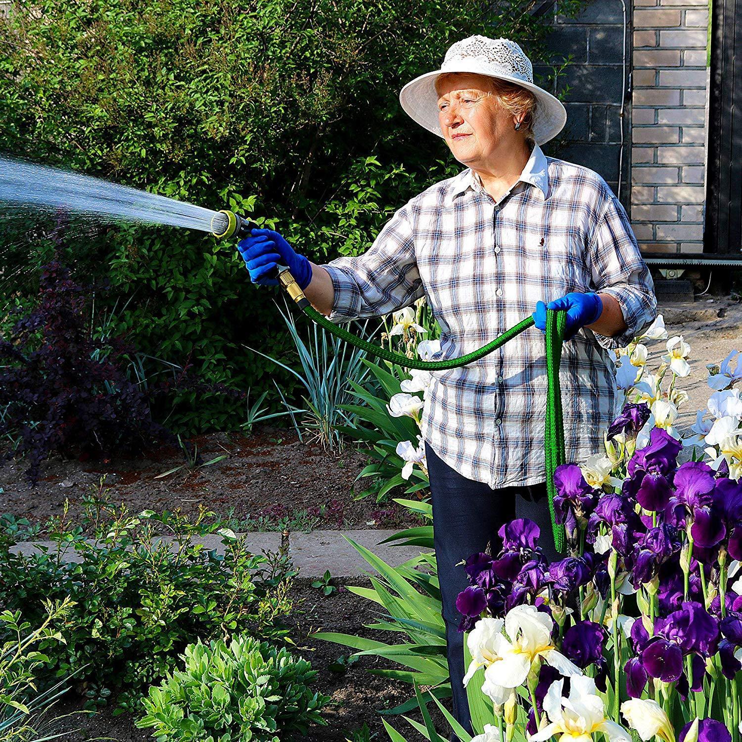 100 FOOT EXPANDING WATER HOSE for yard and garden. Very flexible expandable hose up to 3 times in length. Just right for reaching your entire property with just one hose.