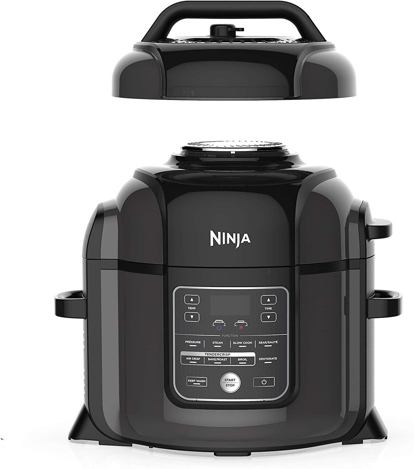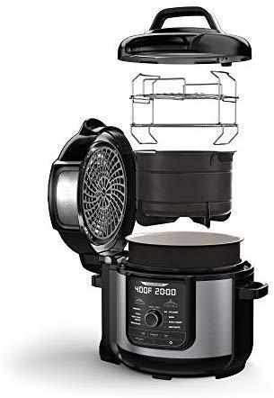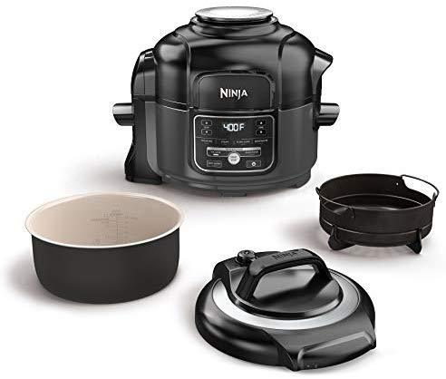 Ninja Foodi 7-in-1 Programmable Pressure Fryer, Slow Multi Cooker with TenderCrisp Technology, 5 Pot, 3-qt. Air Fry Basket (OP101), 5-Quart, Black/Gray