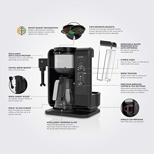 Brew multiple brew sizes, ranging from a pod-free single cup or travel mug, all the way up to a full carafe Hot Brewing lets you enjoy a bold, flavorful cup of hot coffee or tea. Or brew Over Ice to create full-flavored, refreshing iced beverages Brew your favorite style of tea, whether you use tea bags or loose-leaf, with the specially designed tea brew basket Auto-iQ One-Touch Intelligence Technology Built-In frother turns hot or cold milk into silky-smooth froth in seconds, with nothing more than the press of a button.The thermal carafe is NOT dishwasher safe