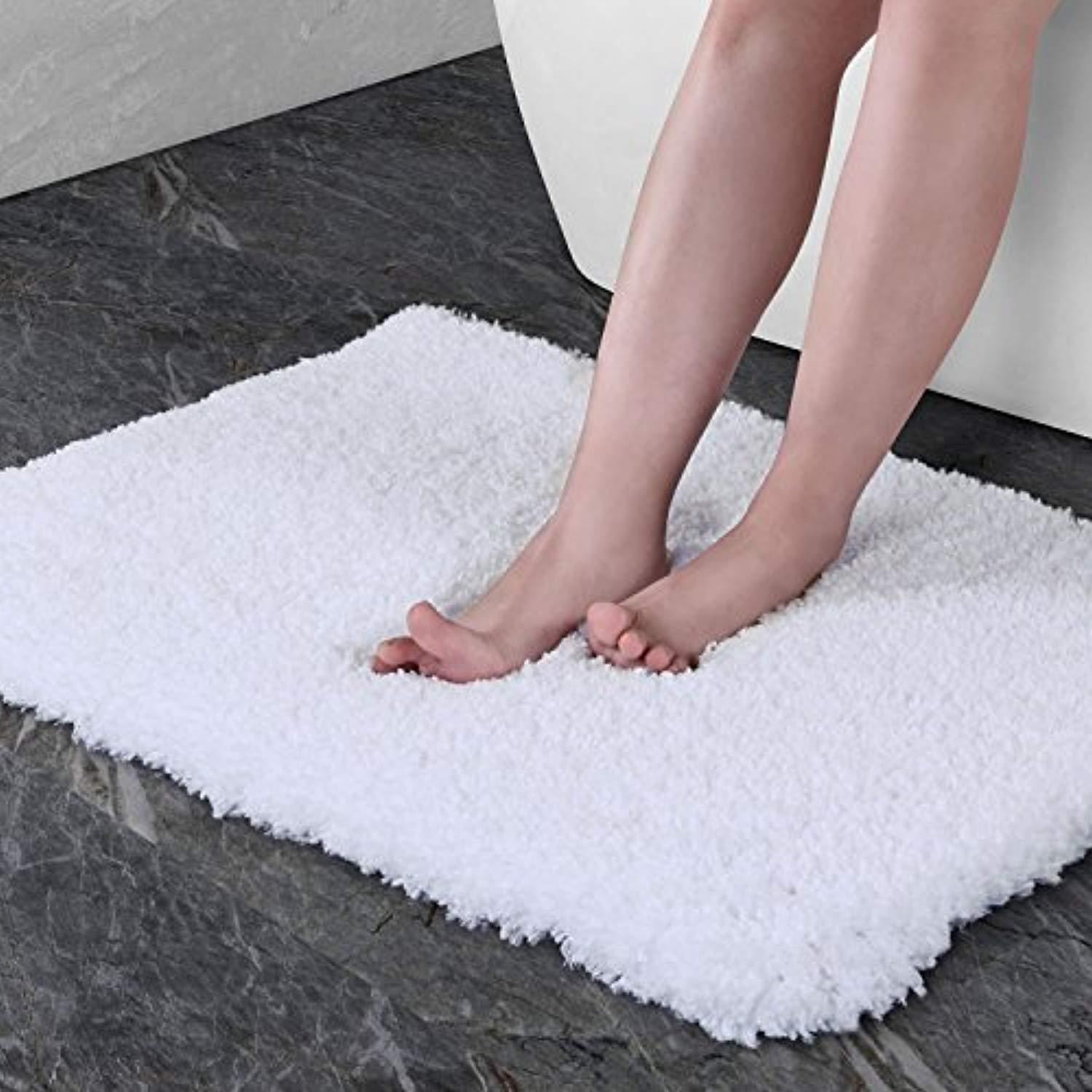 Vivid decoration. This white bath rug has a brilliant white hue and a soft polyester twill construction that's a perfectly pretty and functional addition to your bathroom decor. True white gives your bathroom a vivid look and goes with everything