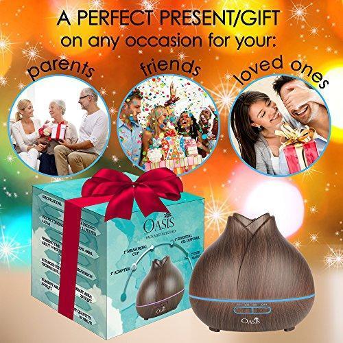 Oasis Essential Oil Diffuser (400ml) - Best Rated Aromatherapy Diffuser - Cool Mist Humidifier with Adjustable Mist Mode and 7 Color Changing LED Lights - Ultrasonic Humidifier (Light Wood Grain)