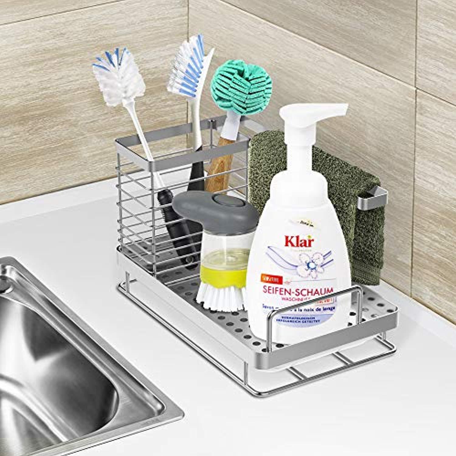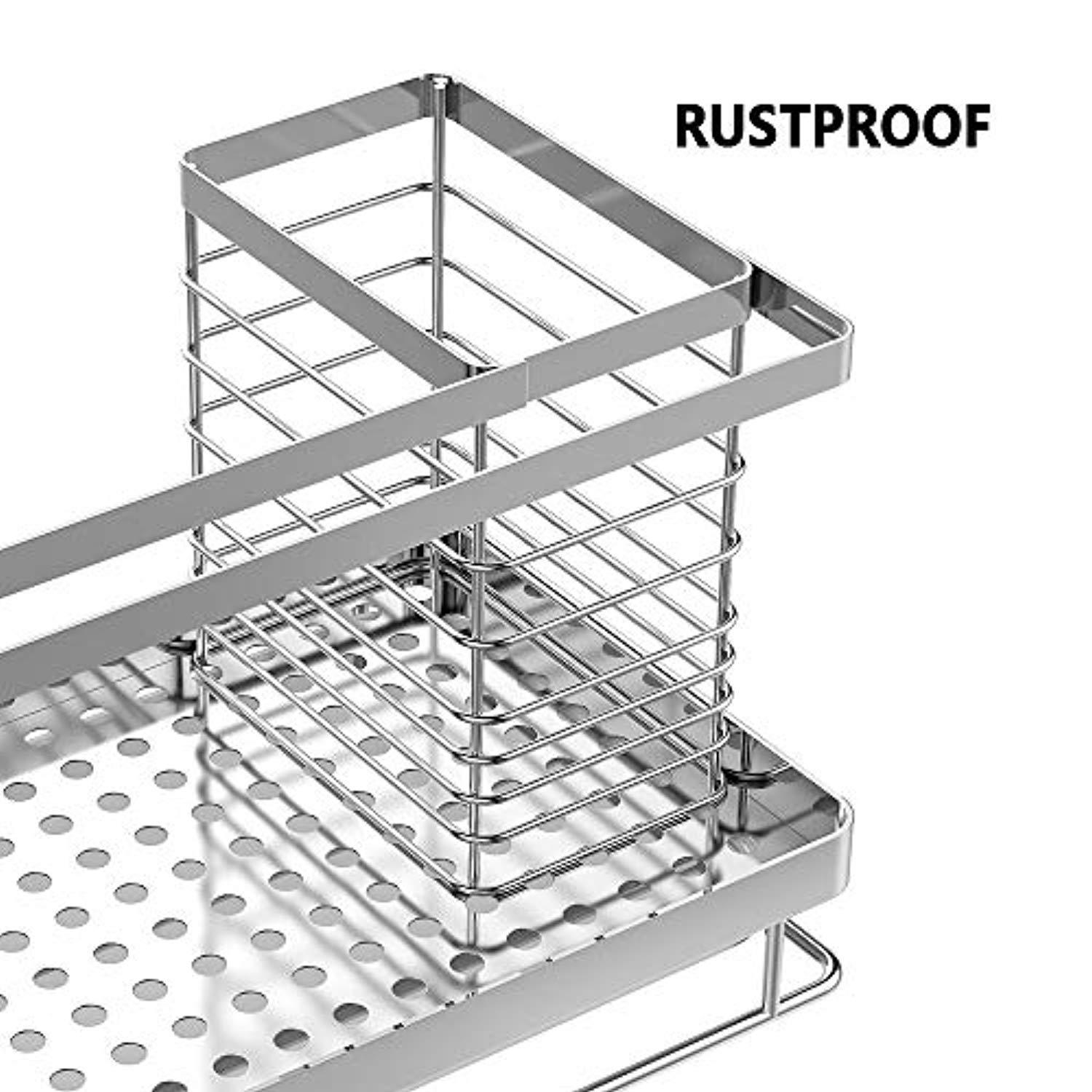 ODesign Kitchen Sink Caddy Organizer Sponge Soap Brush Holder with Drain Pan Stainless Steel
