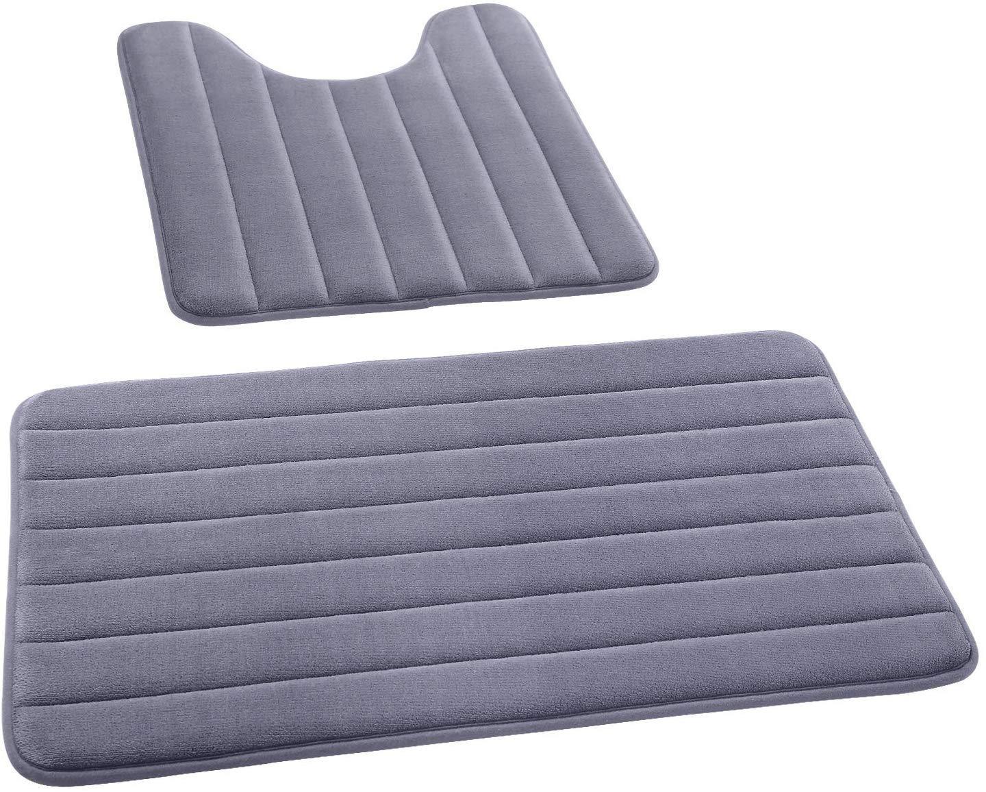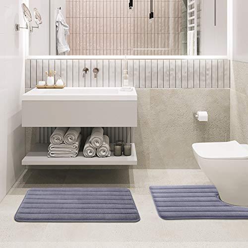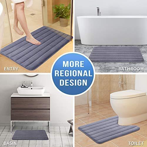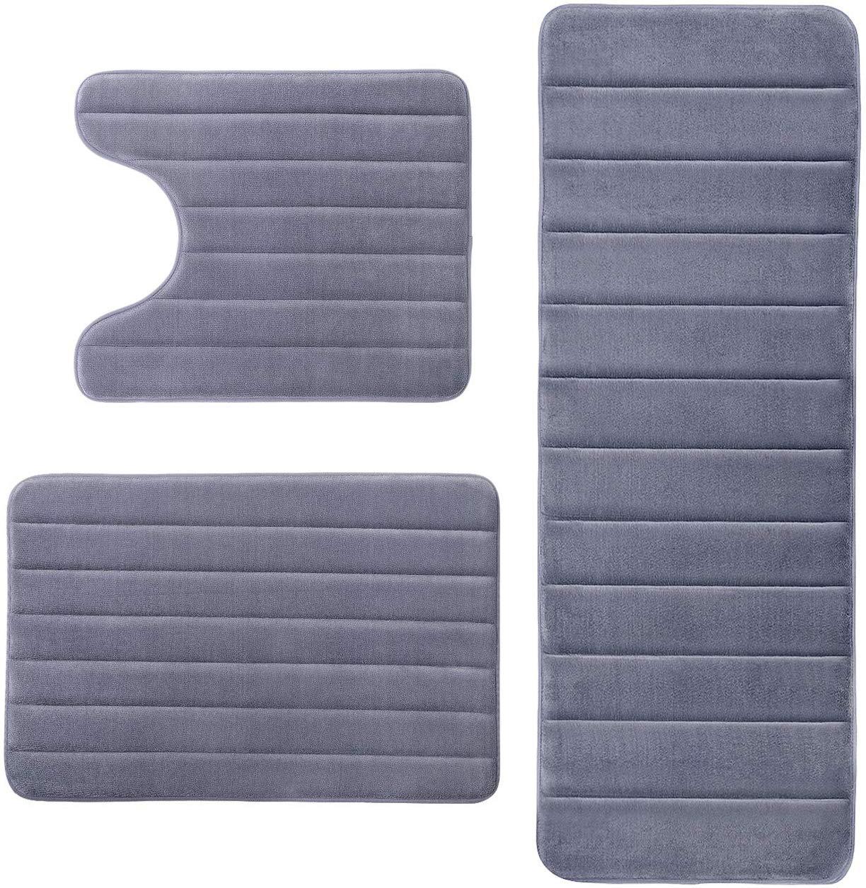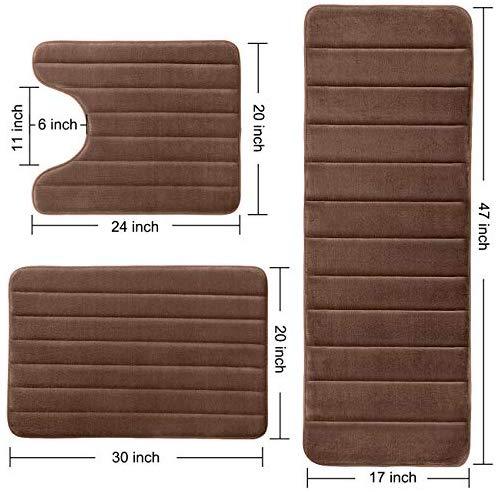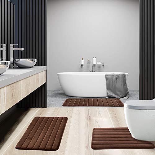 Office Marshal Bathroom Rugs Bath Mats for Bathroom Luxury Soft Anti-Slip Memory Foam 3 PCS Mats Set(U-Shaped 20"x24" Toilet Mat+30"x20" Shower Mat+17"x47" Bath Mat) Absorbent Bath Rugs Machine Washable