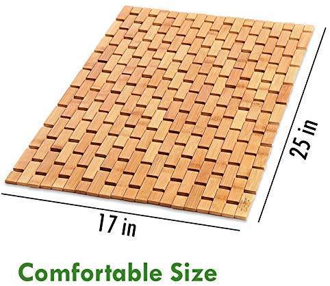 DURABLE, WATERPROOF FINISH: The seasoned bamboo mat is temperature treated to be waterproof and to stay far from mold and odor; a lattice design lets water and air flow freely