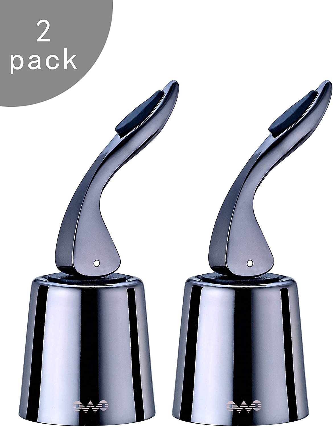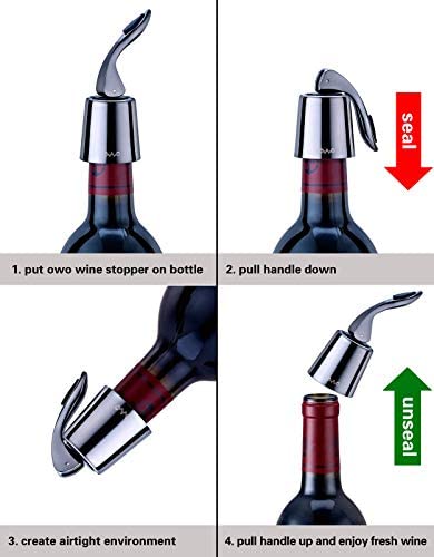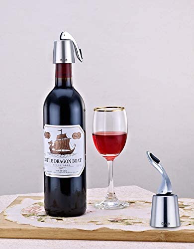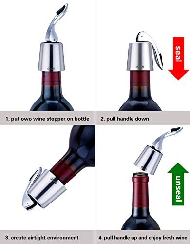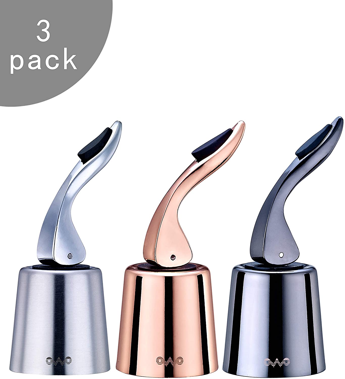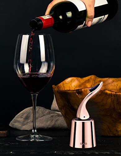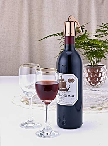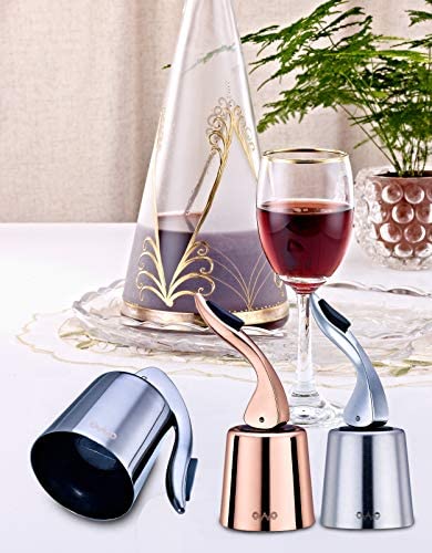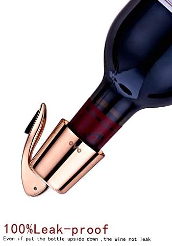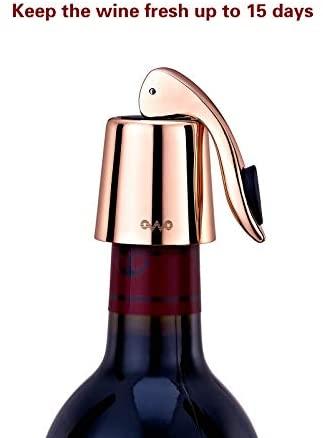 OHMAXHO Wine bottle Stopper with Stainless Steel, Wine Preserver, Decorative Wine Saver Vacuum Plug with Silicone, Expanding Beverage Bottle Stopper, Reusable Wine Cork Keeps Wine Fresh (Rose Gold)