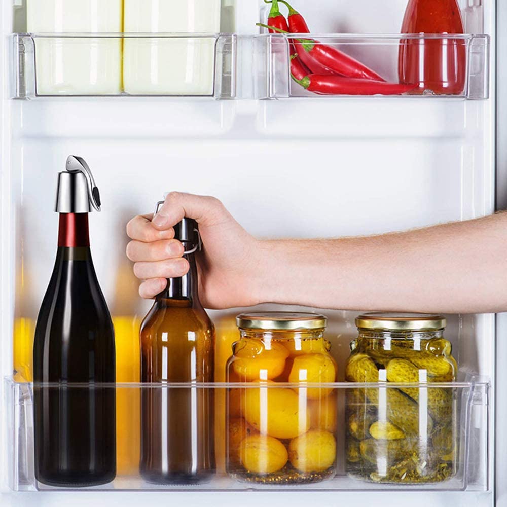 OHMAXHO Wine Stoppers(2 PACK),Stainless Steel Sealed Wine Bottle Stoppers,Inner Rubber Seal Leakproof Wine Stoppers