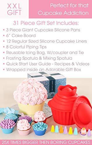 OMG Giant Cupcake Mold Pan - Huge Fun, Jumbo Smash Cake Big Silicone, Extra Large Cake Decorating Supplies, Icing Piping Bags Tips, Muffin Liner Cups, Oversize Baking and Frosting Accessories Gift Set