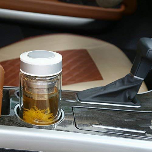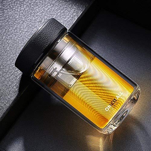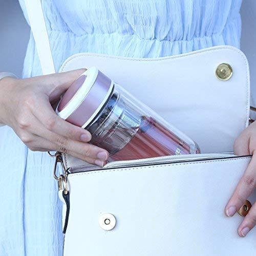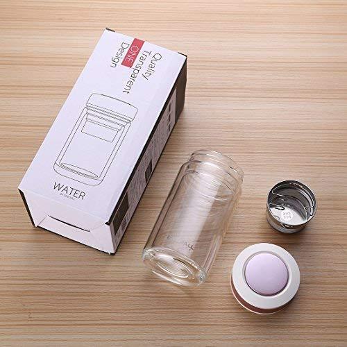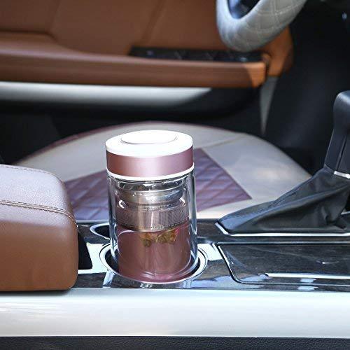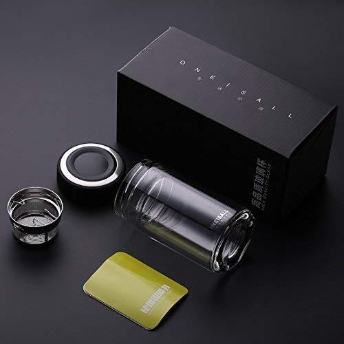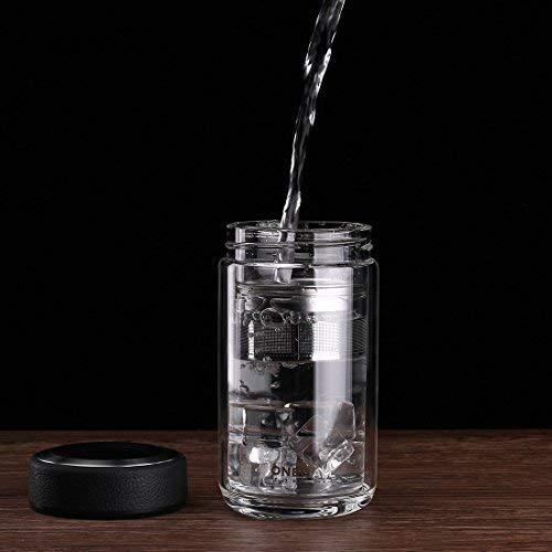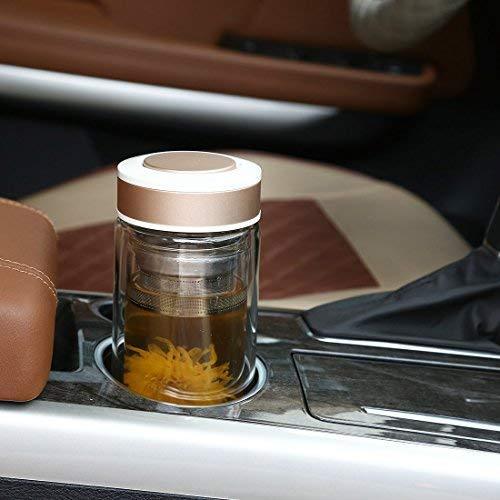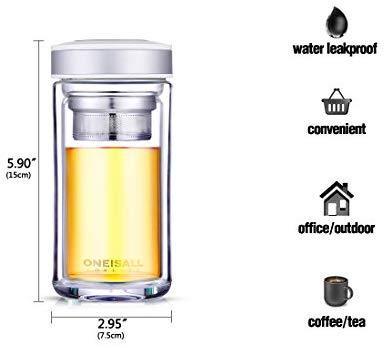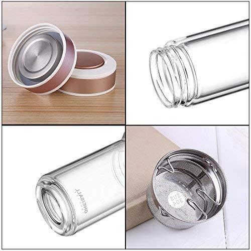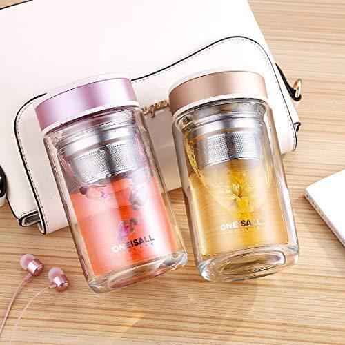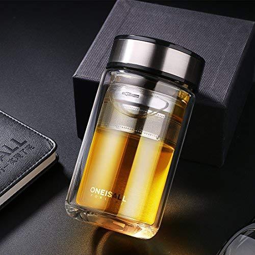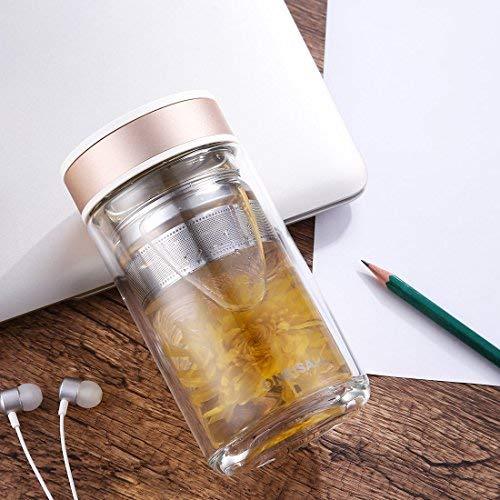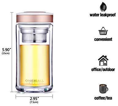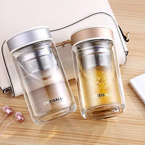 ONEISALL Double Wall Glass Travel Tea Mug with Stainless Steel Filter, Ultra Clear Spill-proof Strong Glass Tea Tumbler, 320ML (Champagne)