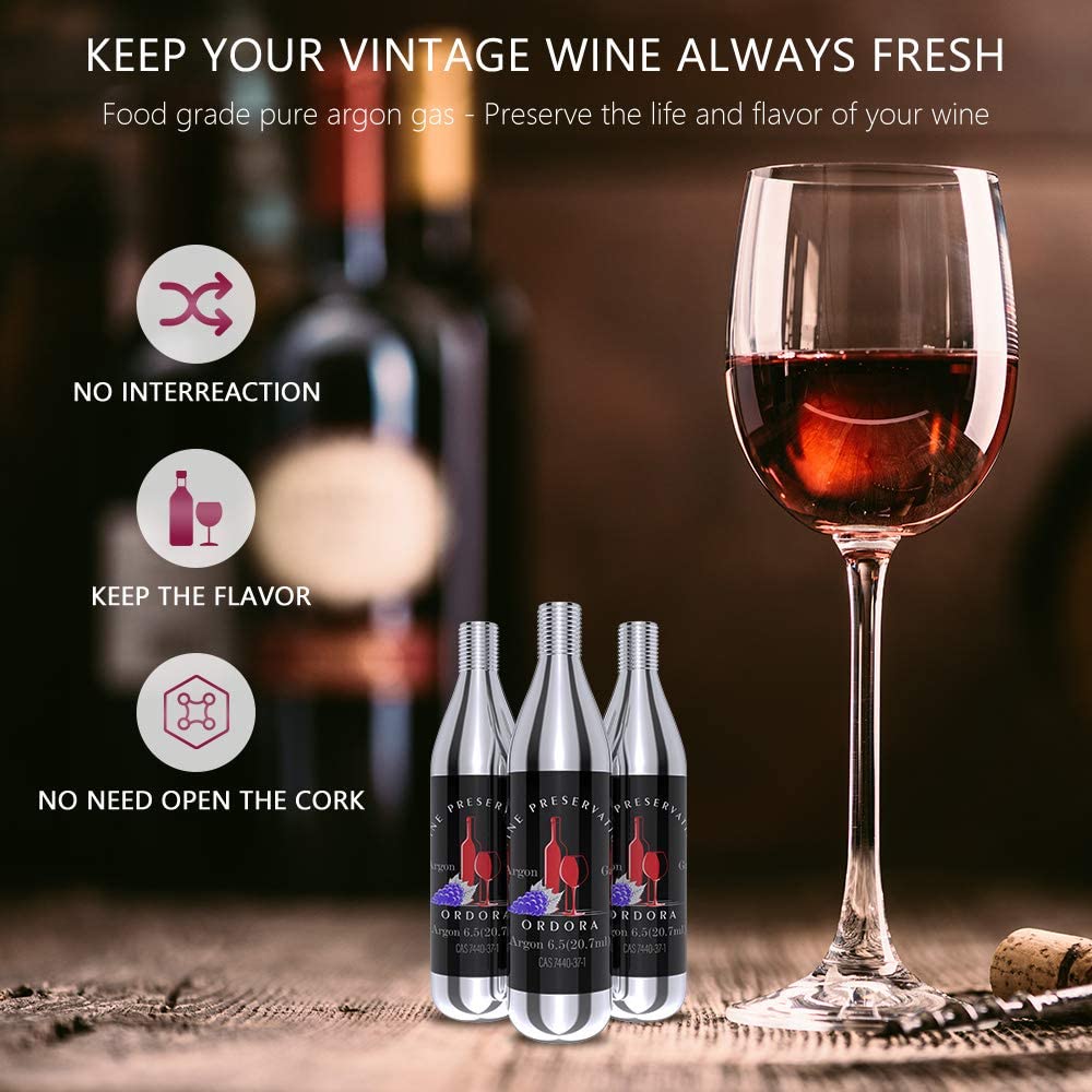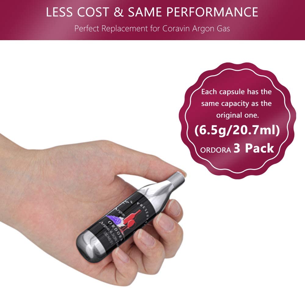 PURE PERFORMANCE: ORDORA pure food-grade argon cartridges perfectly compatible with Coravin wine preservation system and will not leak, providing a perfect pour. Best Replacement Choice compatible for Coravin cartridges.