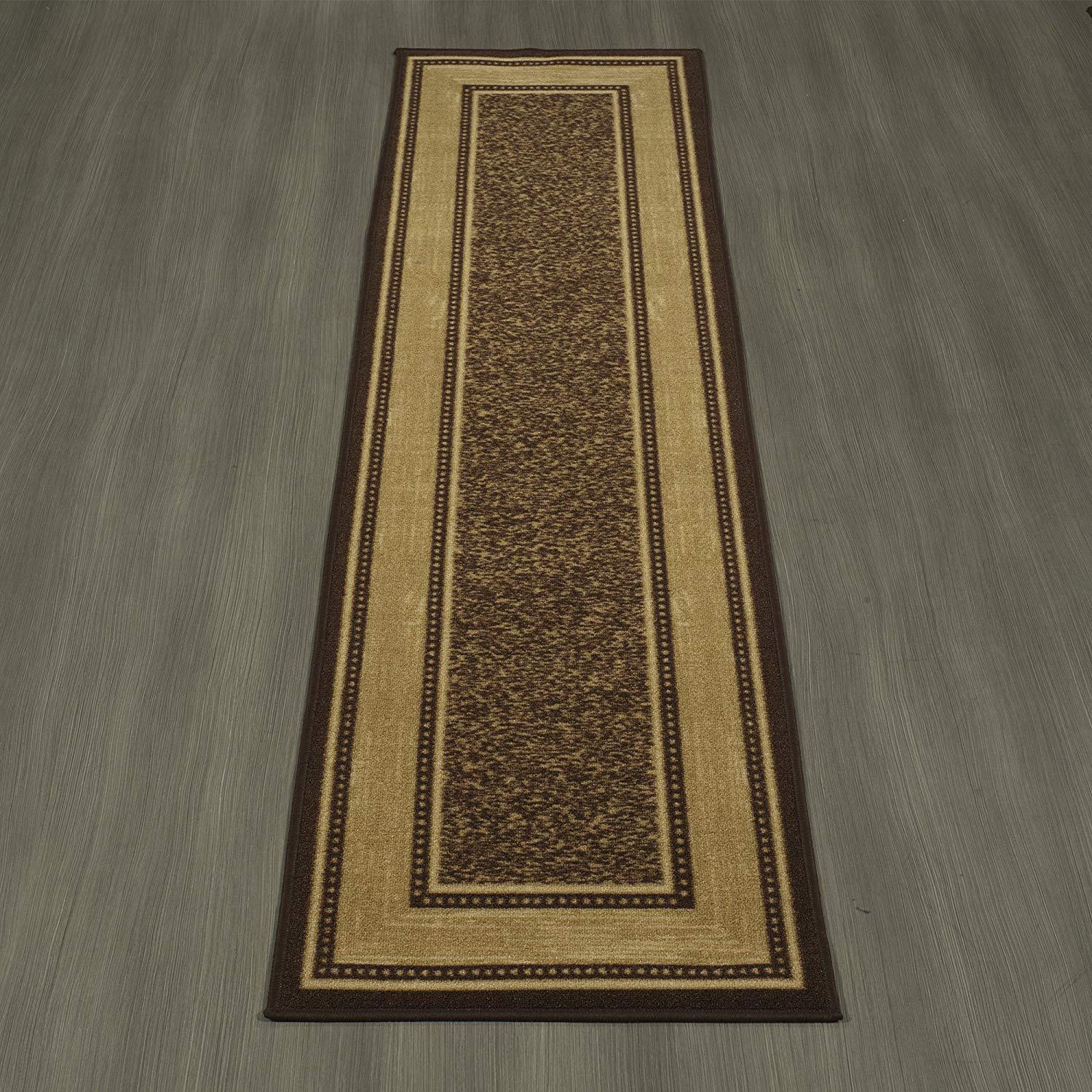 Ottomanson Ottohome Collection Contemporary Bordered Design Modern Runner Rug, 20" x 59", Chocolate Brown