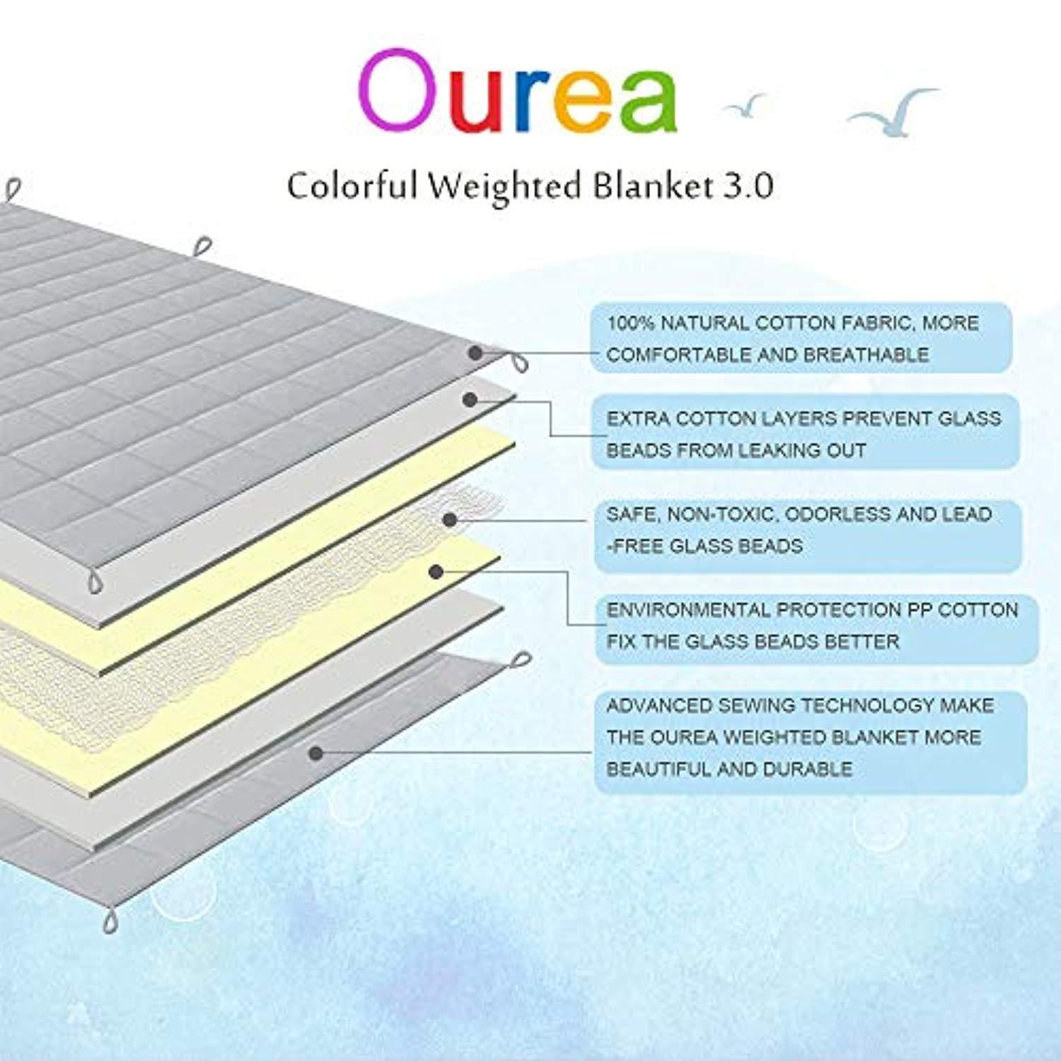 Ourea 10 lbs Cooling Weighted Blanket | 48” × 78” | Twin Size | Grey | Evenly Distributed Weight | Perfect Size for Kids Youth Adults