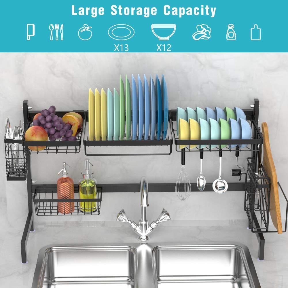 Over the Sink Dish Drying Rack, Cambond Dish Drainer Shelf Stainless Steel Dish Rack with Utensils Holder for Kitchen Counter