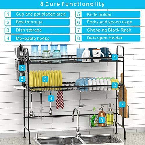 Over the Sink Dish Drying Rack, Lifinity 2 Tier Dish Drainer Shelf Stainless Steel Large Dish Rack with Utensils Holder for Kitchen Counter by Cambond