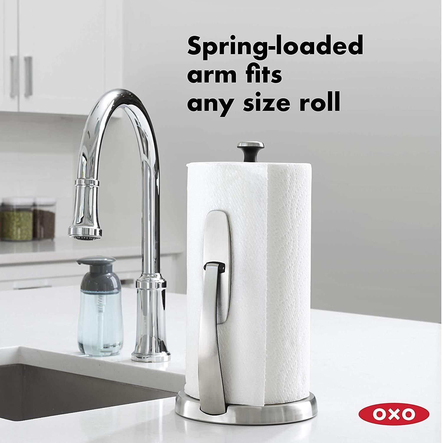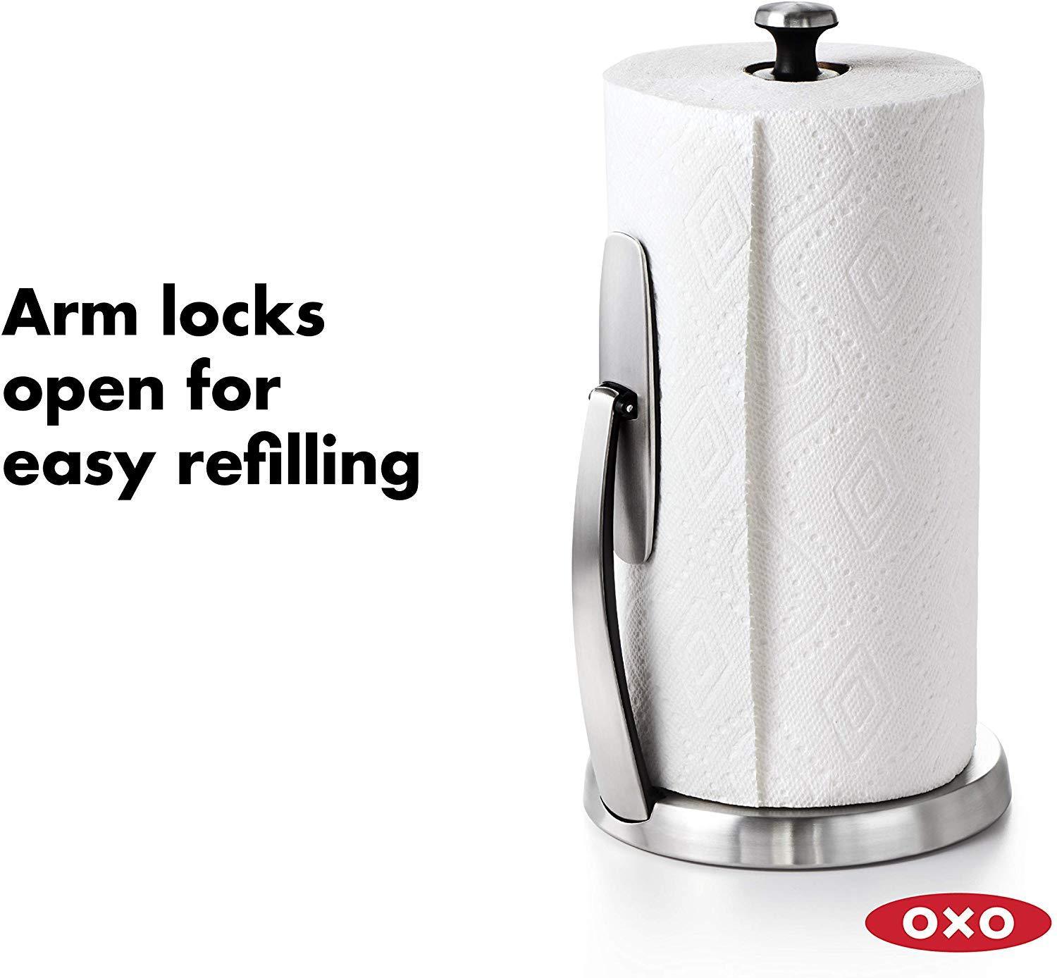 OXO Good Grips SimplyTear Standing Paper Towel Holder, Brushed Stainless Steel