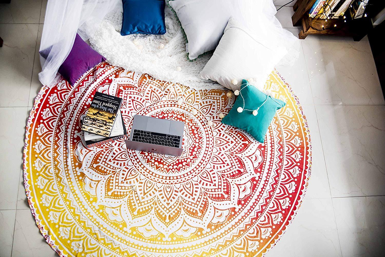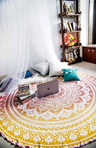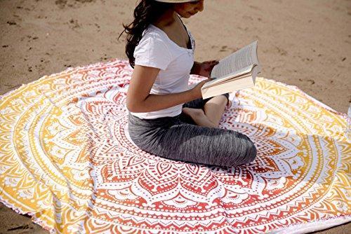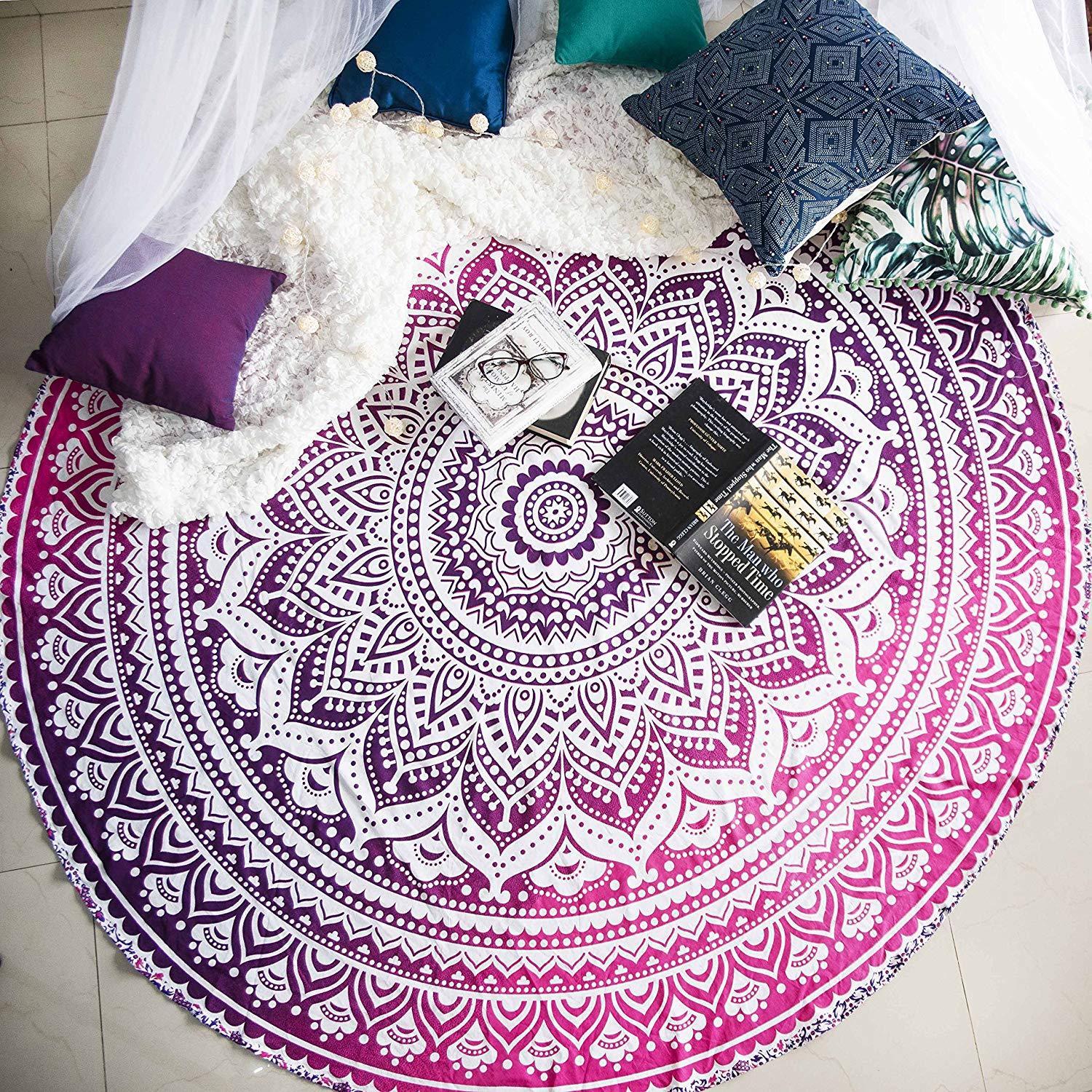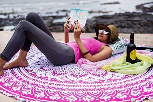 Cotton Imported Folkulture exclusive top quality Magenta Marvel Round Tapestry measures 72 Inches (180 cm) Diameter and made of pure 100% handloom cotton fabric; Perfect for Living Room Table Runner, dining, round, rectangle, square or coffee / tea table Makes a great Beach Towel, Hippi Beach Wrap Around for teen girls, Meditation Rug, Bed Throw Blanket, Handicraft Wall Hanging or College Wall Art Decal, Picnic Blanket for men or guys, Wonderful Handcrafted Tabletop or any Home Office Decor This super versatile, prime and popular large Indian mandala yogamat or vintage round towel tapestry sheet set comes in a pretty gift packing ready to give it as a gift to your friends or family on their birthday, anniversary or friendship day! Our premium white / black print beach round tapestries / mandalas are handmade with love by our craftsmen in India. Each piece is beautiful, unique and ethnic artwork and made with love and care by our creative designer artist This jaipur design trippy tapestry can also be used as decorative item for your kid or children bedroom, Chair, Leather Sofa or Couch Cover, Kitchen Cloth, Garden Outdoor Yoga Mat for exercise, Dorm Room Accessories or any house interior purpose.