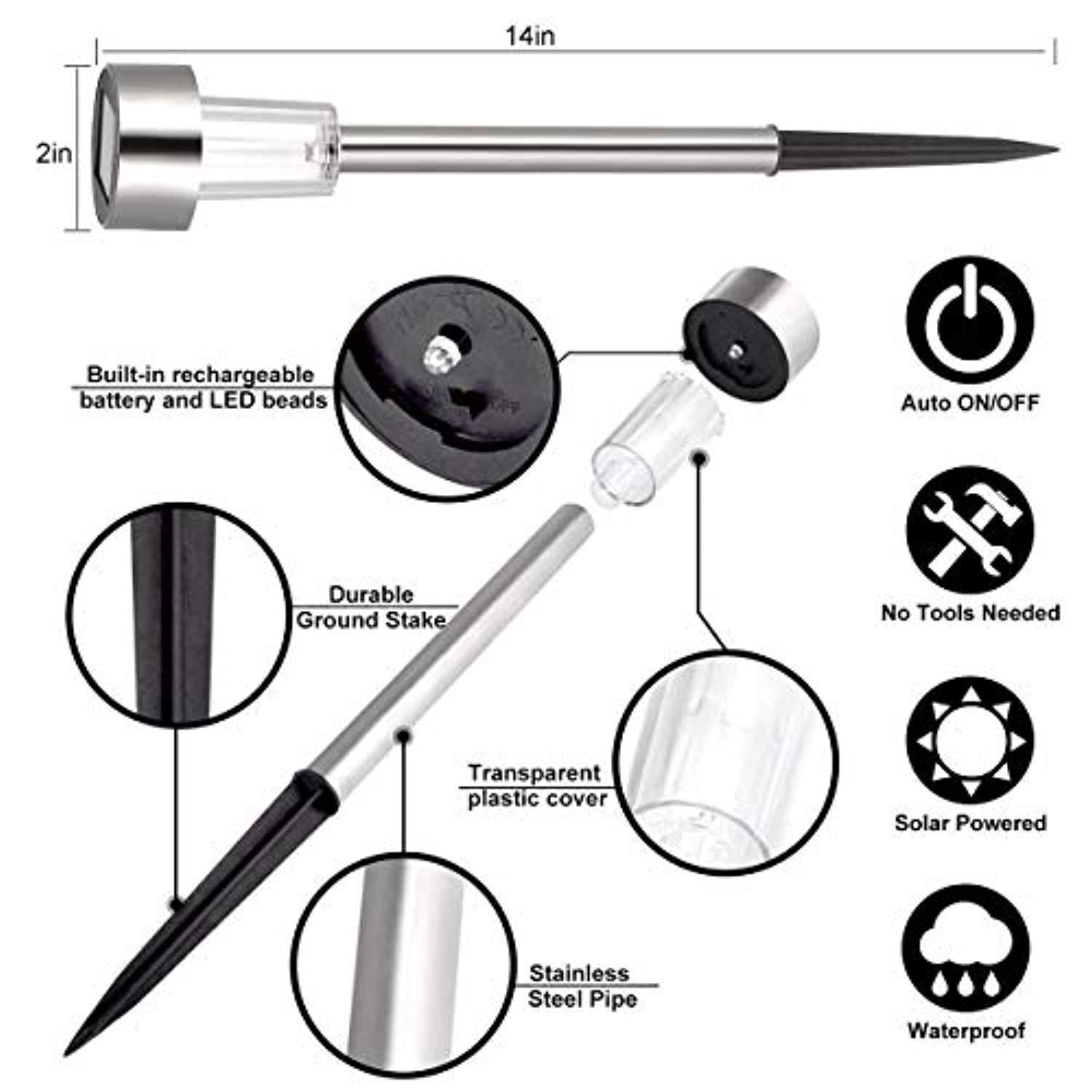 Pathway Lights Solar Lights Outdoor Pathday Solar Powered Garden Lights Stainless Steel Waterproof Bright White Landscape Light for Path/Lawn/Patio/Yard/Walkway/Driveway Outdoors Led Lights (12 PACK)