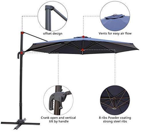 Patio Offset Cantilever Umbrella 10-Feet Outdoor Patio Hanging Umbrella,360 Degree Rotation with Cross Base (10 FT, Beige)