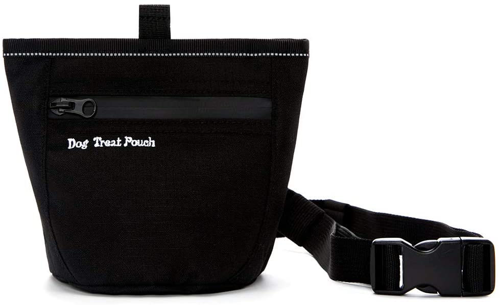 Professional Dog Training Treats Pouch Bag with Belt. Roomy Main Compartment: Ergonomically shaped with black interior lining for better visibility of treats. It can accommodate up to 3 Cups of treats. Details: 5" Wide, 5.5 " High and 3" Deep (when open). Low profile design when closed. Easy Open / Close Magnetic Opening. The Dog Reward Pouch Bag has a magnetic closure with cord-pull for quick open/close operation. 【This bag has a large opening and can be used by people with big hands. 】 Doggy Treat Bag Pouch with Zippered Front Pocket. 4.5" Wide, 3.5 " High. Large enough to store a small leash or a handful of treats.