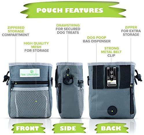 STORE YOUR STUFF: Safely store your smartphone, money or keys in the two zippered pouches or front mesh netting while taking a stroll with your doggie. This ultimate dog treat bag has it all!
