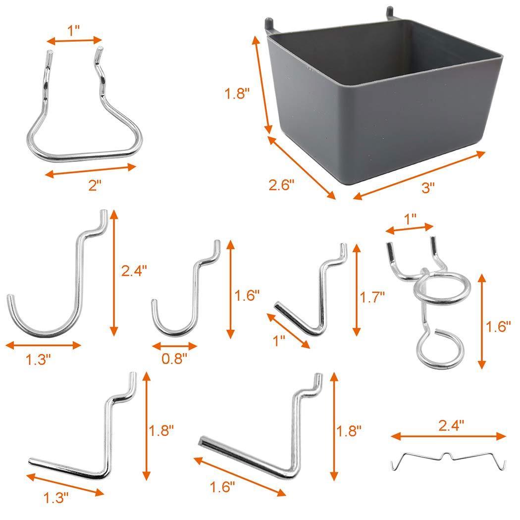 Pegboard Hooks Assortment with Pegboard Bins, Peg Locks, for Organizing Tools, 80 Piece by FRIMOONY