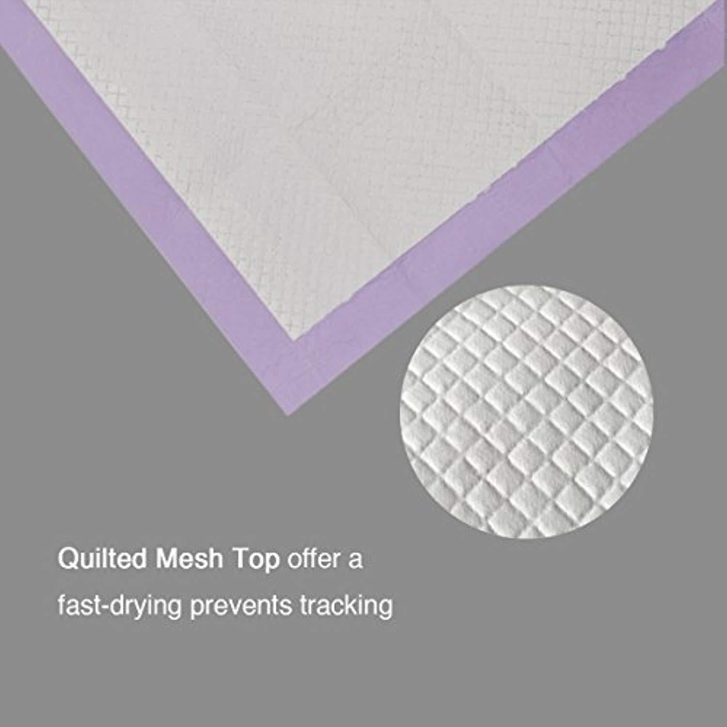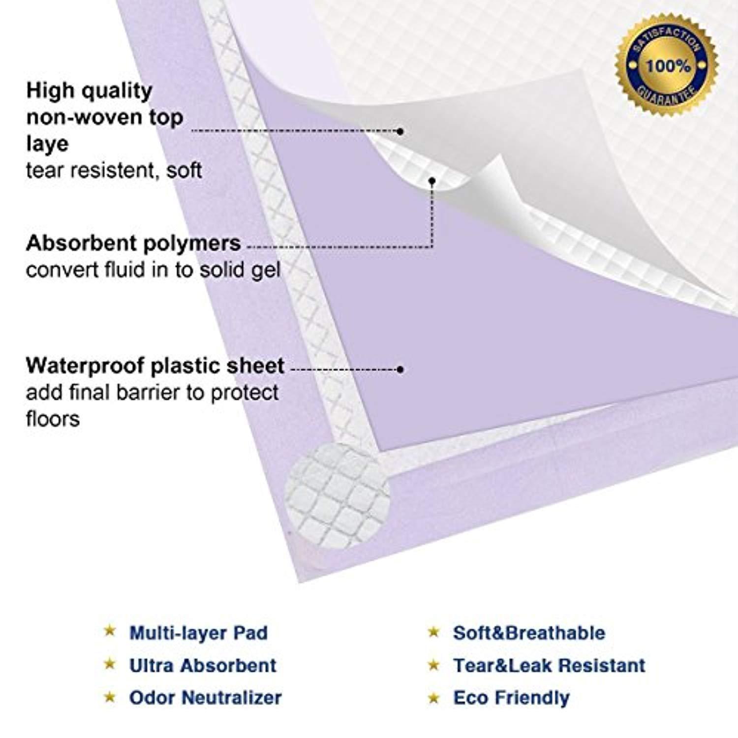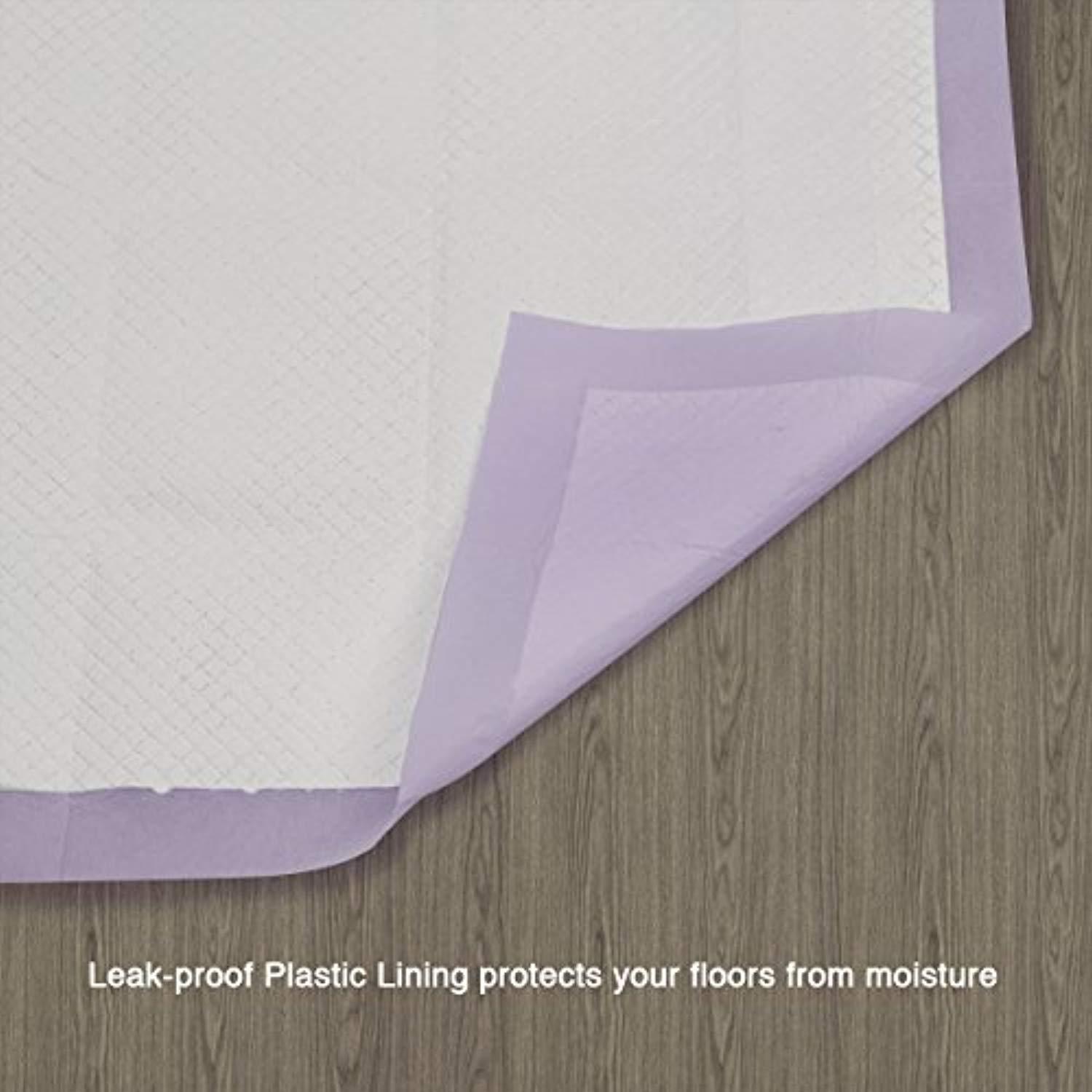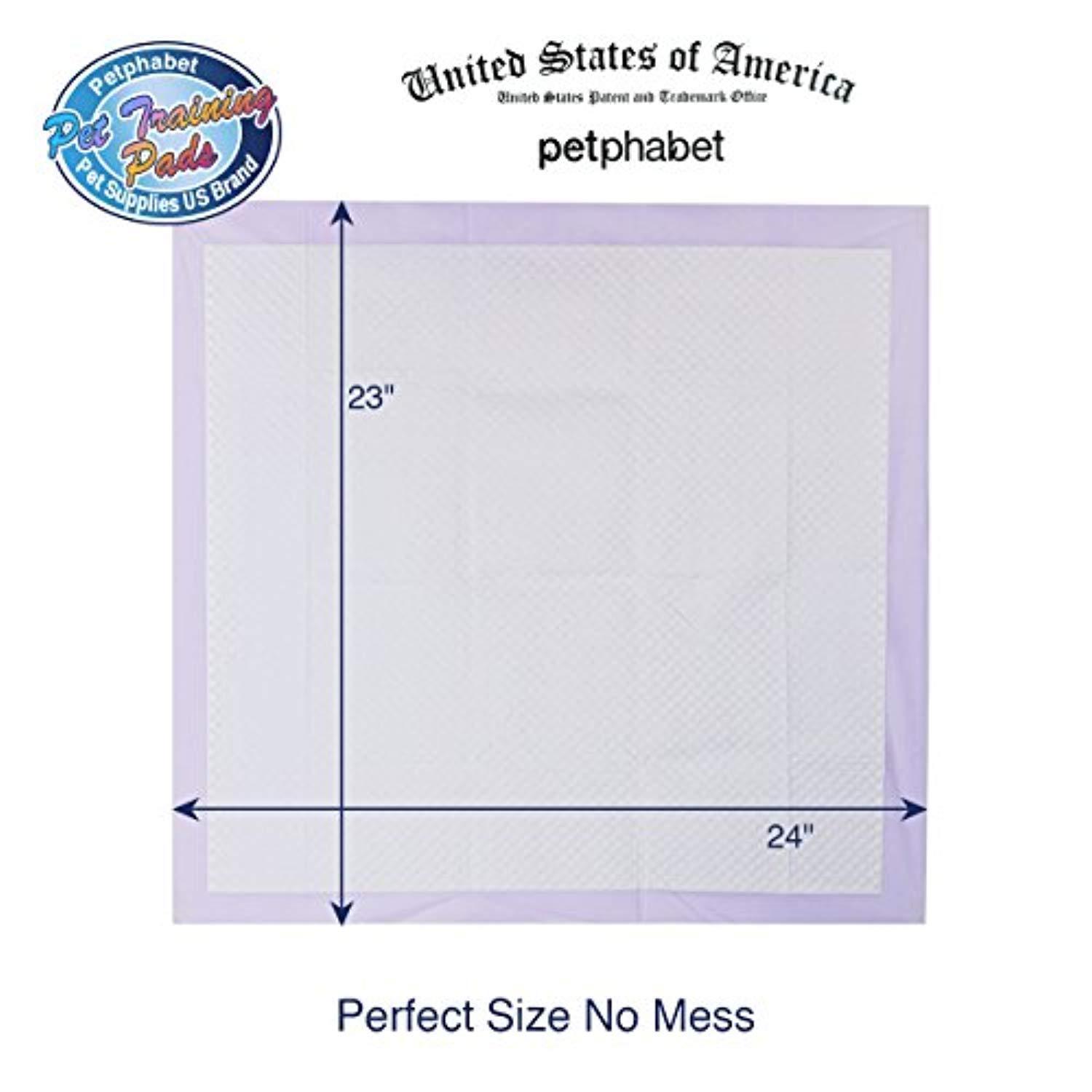 ABSORBS. Powerful absorbent core provides protection for a whole day,keeps floors perfectly clean and the home smelling fresh ELIMINATES TRACKING.3 cups holdup for MIDDLE SIZE DOGS and QUICK DRY technology provide an easy solution for preventing tracking ODOR ELIMINATES-Double strength odor control, LAVENDER scent + odor neutralizer LEAK PROOF. The Petphabet Lavender Training Pads comes with a leak proof capability that protects floors from getting wet. Its built in plastic lining locks away your pet's messes. It is perfect for dog owners who do not have access to a yard MONEY BACK SATISFACTION GUARANTEE is what we back our products with so hit the Add To Cart button now and get the best training pad product for your pet. Less time cleaning messy accidents and more time playing with your canine friend