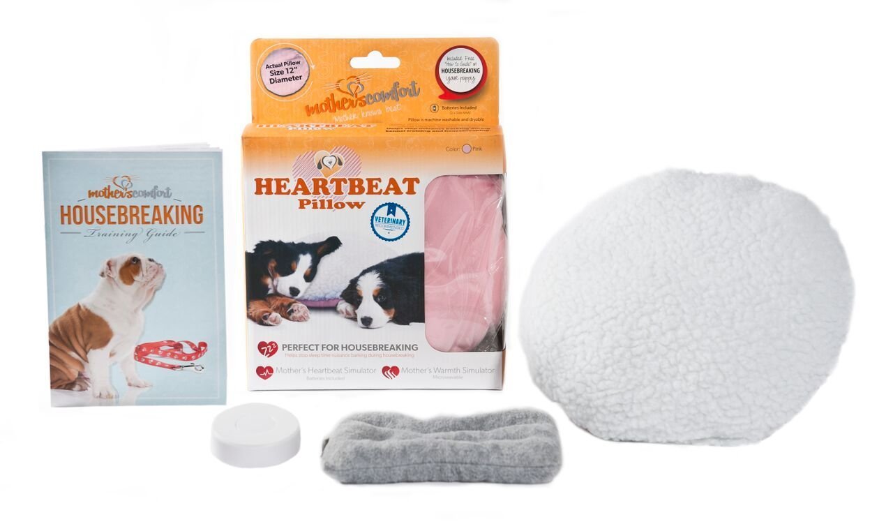PetZu Mother's Comfort Heartbeat Pet Pillow, Pink/White