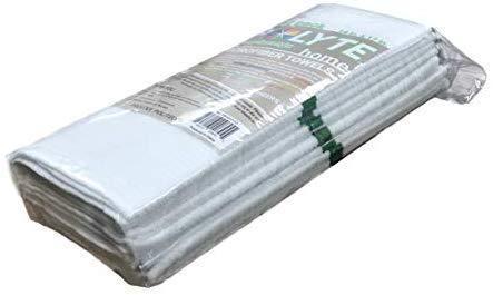 Polyte Microfiber All-Purpose Ribbed Terry Bar Mop Towel for Home, Kitchen, Restaurant Cleaning (14x17, White w/Green Stripe) 12 Pack