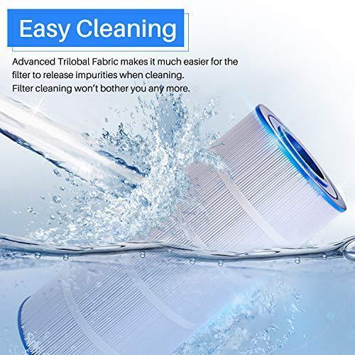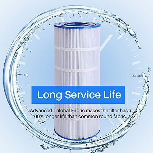 【NSF/ANSI 50 Certified】 Poolpure Pool and Spa filter is tested and certified by IAPMO against NSF/ANSI 50. 【100% Money-Back Guarantee】Six-Months Return Policy Guaranteed! Product Life Time Warranty on Every Filter Confirmed With Defects in Material and Workmanship Within Each Filter's 12 Months Service Life. We promise a risk-free shopping experience backed up with our reliable customer service and technical support team. 【Powerful Filtration Performance】 Innovated "Dirt-Locking" technology make the fabric traps much more contaminants than regular fabric. This filter efficiently removes hair, leaves, dust, sediment, sand, etc. Enjoy clean leisure time in your pool. 【Long Service Life】 Unique Trilobal Filtration Fabric Structure make it easier to capture and release, it is easy to back-wash to recondition the filter. This filter lasts for 1-2 years when proper maintenance is performed. Save money, more time enjoying.