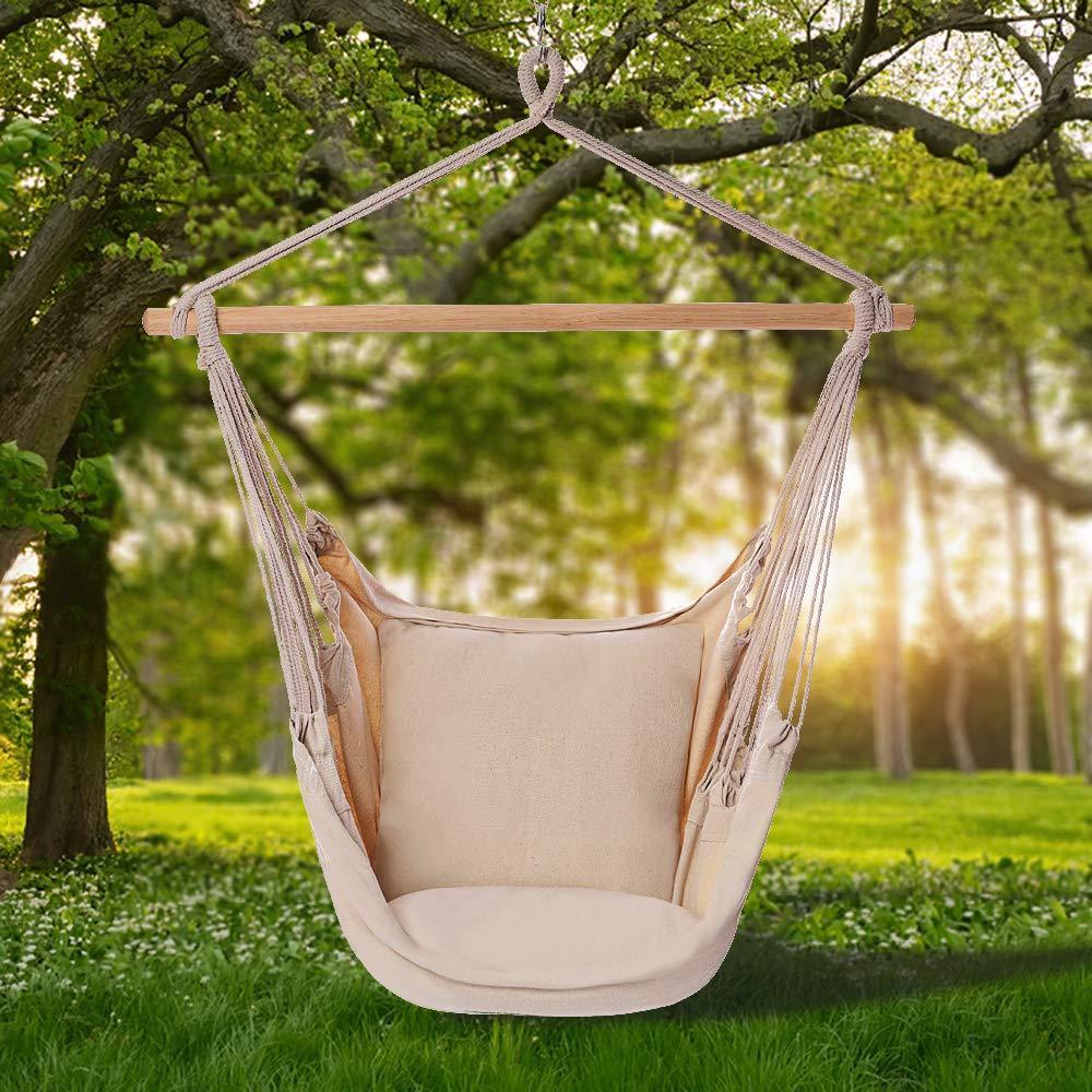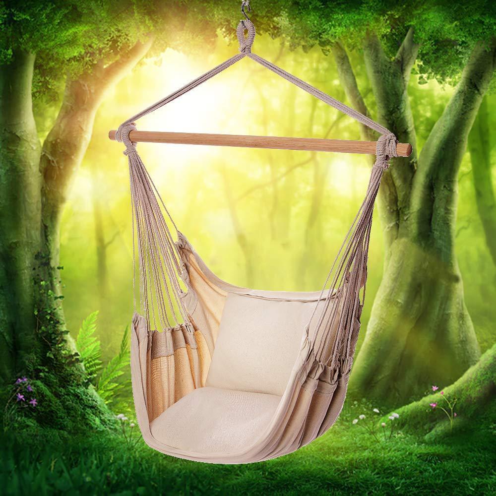 ♬High Quality: Made of sturdy cotton and polyester fabric. High quality construction ensures this hammock chair will never tear or break with regular use