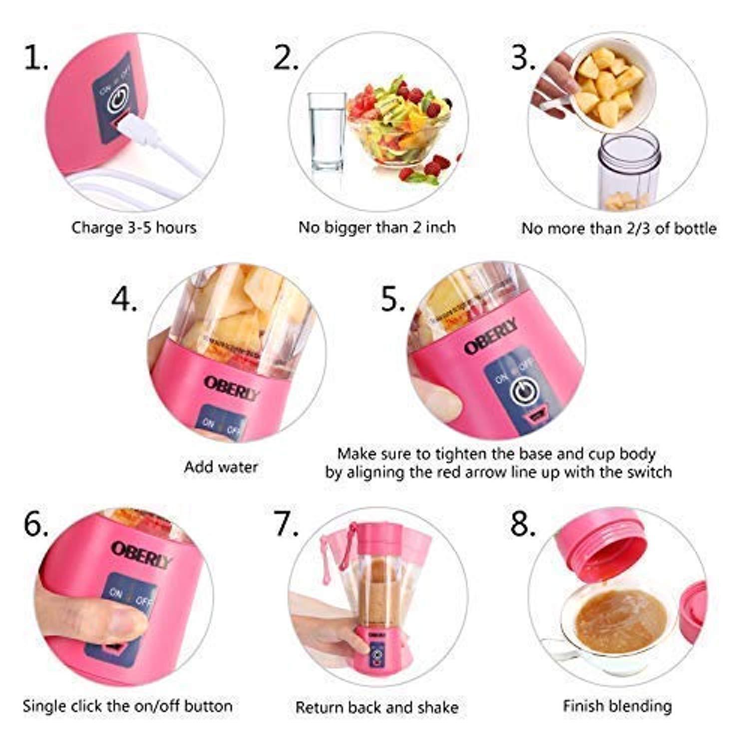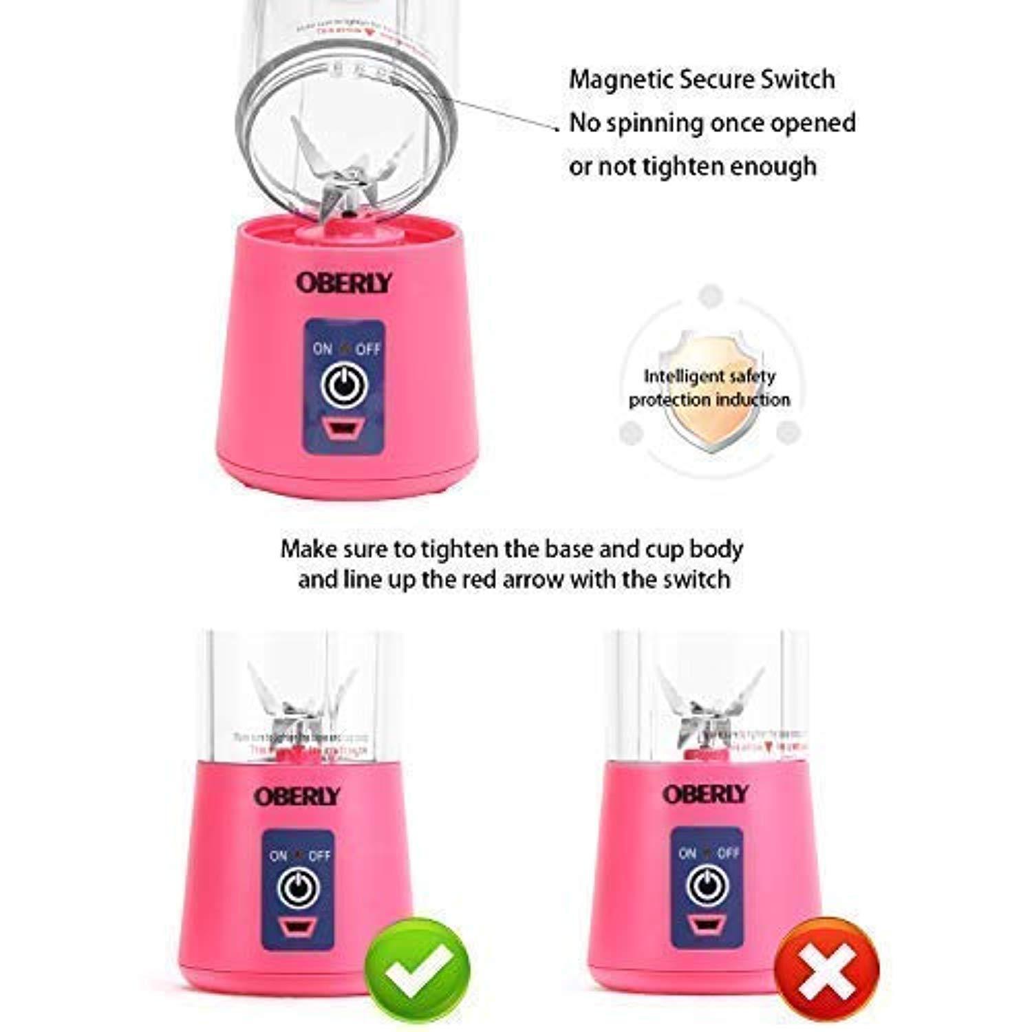 Portable Blender, OBERLY Smoothie Blender USB Juicer Cup - Six Blades in 3D, 13oz Fruit Mixing Machine with 2000mAh Rechargeable Batteries, Ice Tray, Detachable Cup, Perfect Blender for Personal Use (FDA, BPA Free) by OBERLY