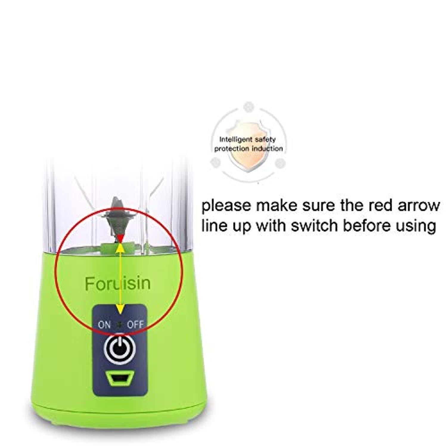 Portable Personal Blender, Household Juicer fruit shake Mixer -Six Blades, 380ml Baby cooking machine with USB Charger Cable (Green)