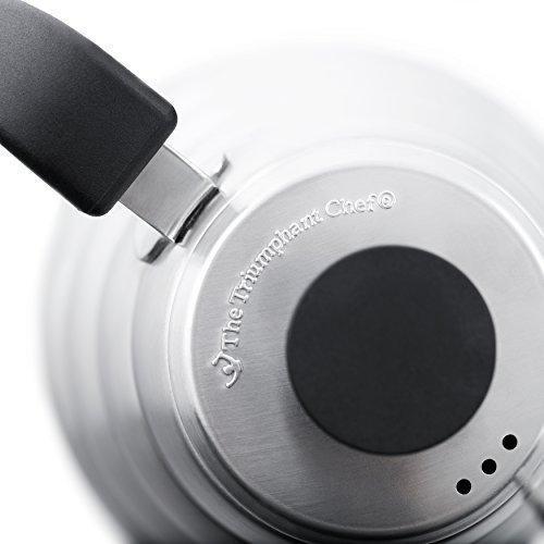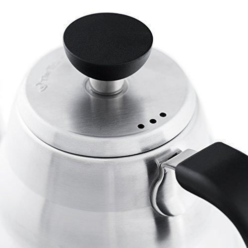 STAINLESS STEEL CONSTRUCTION: Crafted from dishwasher safe stainless steel, our gooseneck kettles are designed to give you years of brewing without rust corrosion or wear. Removable scald-proof top and ergonomic, easy grip angled handle are coated with heat resistant BPA free rubber shielding protecting your hands while you pour. Wide easy to clean brim features a simple three hole steam release vent to prevent pressure and boil overs. All in this classic gooseneck kettle design.