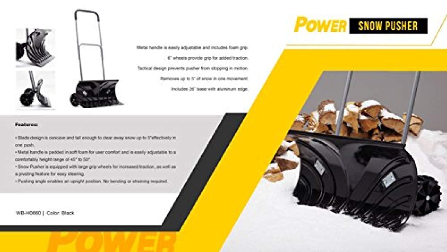 PERFECT FOR THE MOST DIFFICULT JOBS: The Power Heavy Duty Snow Pusher was especially designed to prevent pusher from stopping in motion. Its 6” wheels are perfect for all jobs and provide extra grip for added traction, as well as a pivoting feature for easy steering.