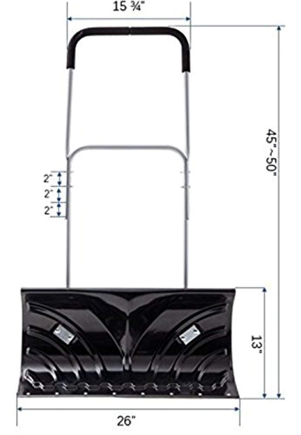 EXTRA WIDE BASE: It is also equipped with a 26” base with aluminum edge. The blade design is concave and tall enough to clear away snow up to 5” effectively in 1 push! Yes, this is the right product for the toughest days!