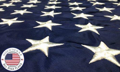 Premium American Flag 3x5' - 100% Made in the USA - Durable, Long Lasting, Bright & Vivid Nylon Material - Densely Embroidered Stars, Sewn Stripes with Lock Stitching, Four Rows of Lock Stitching on the Fly End, Tough Enough for Both Commercial and Reside
