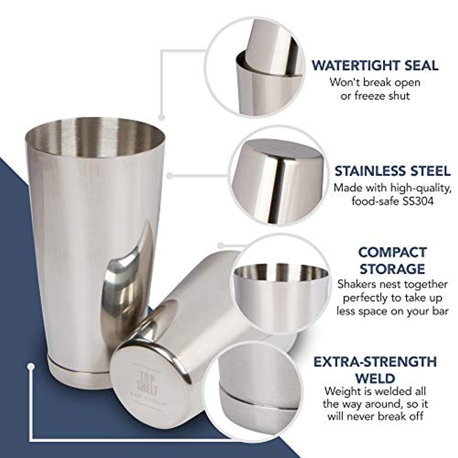 Premium Cocktail Shaker Set: Two-Piece Pro Boston Shaker Set. Unweighted 18oz & Weighted 28oz Martini Drink Shaker made from Stainless Steel 304