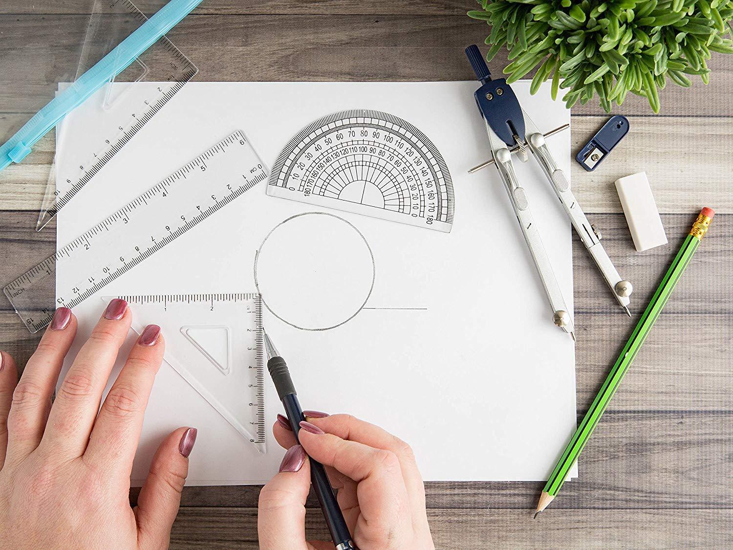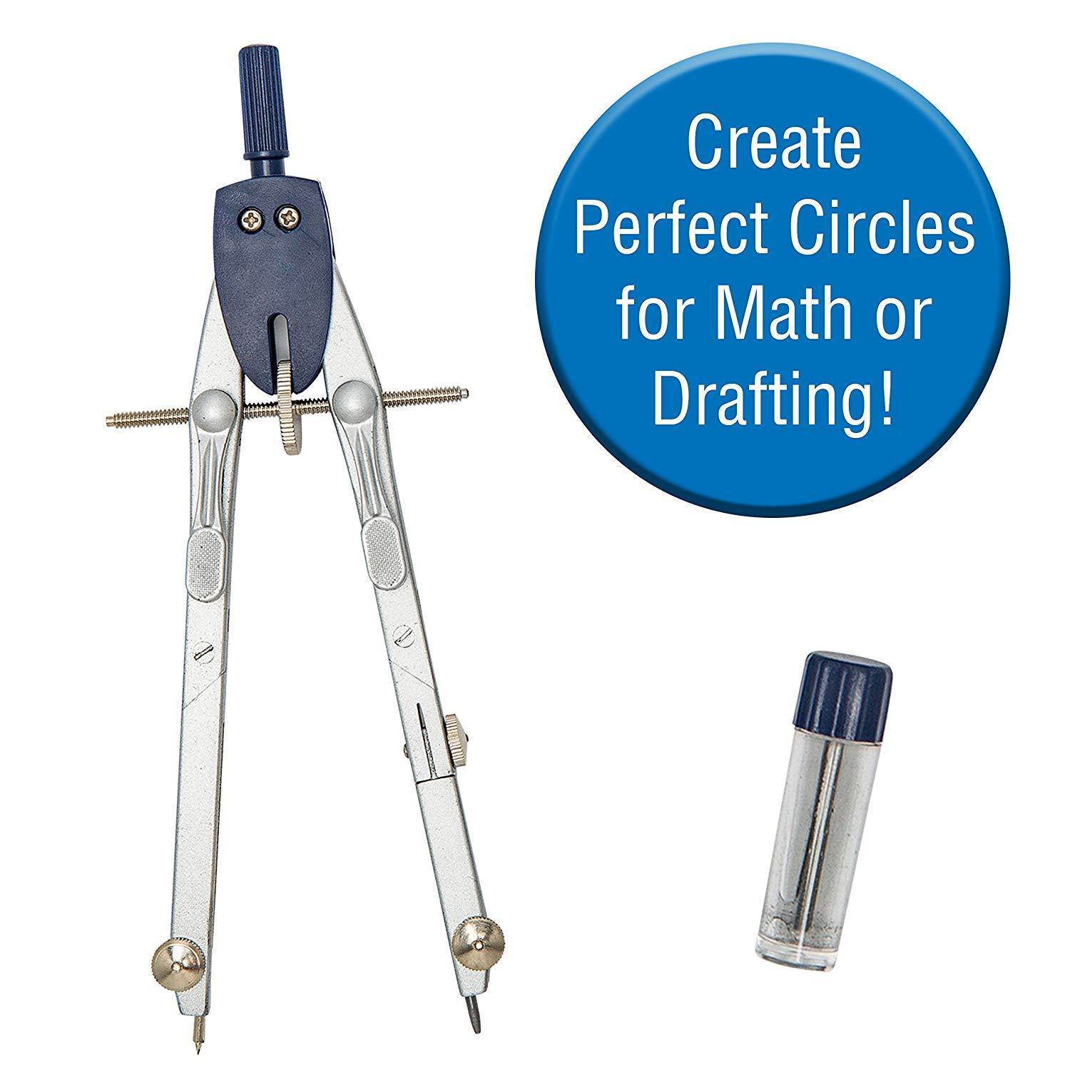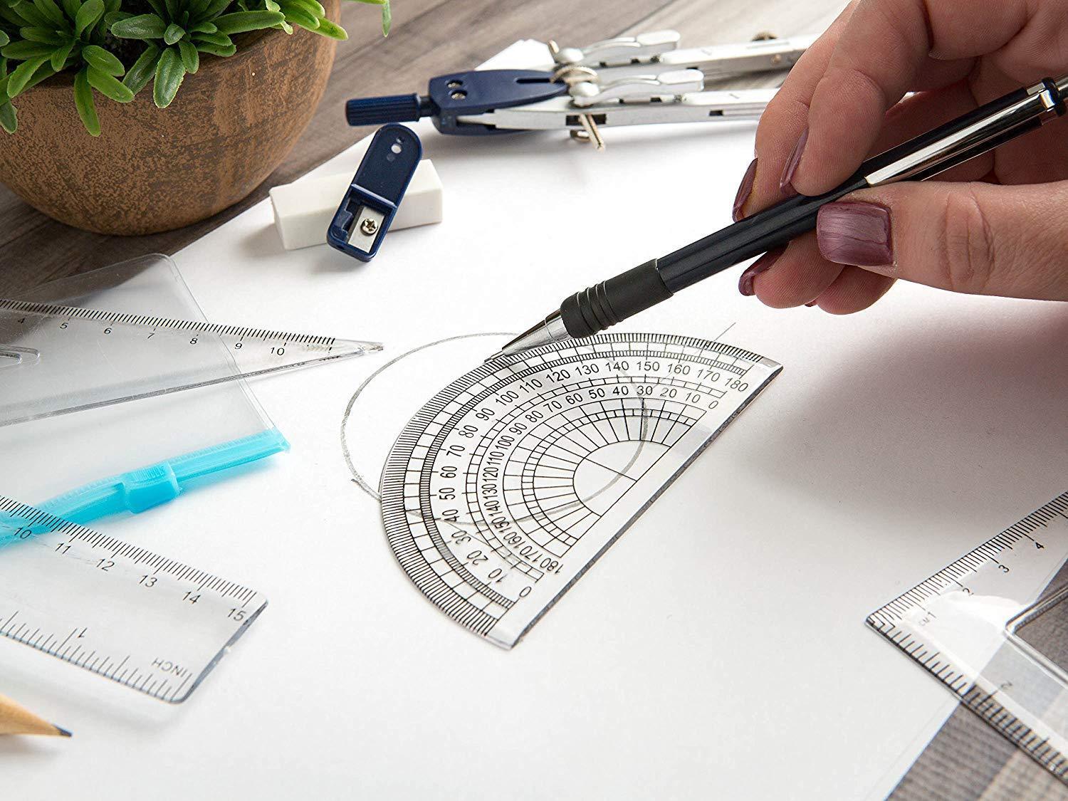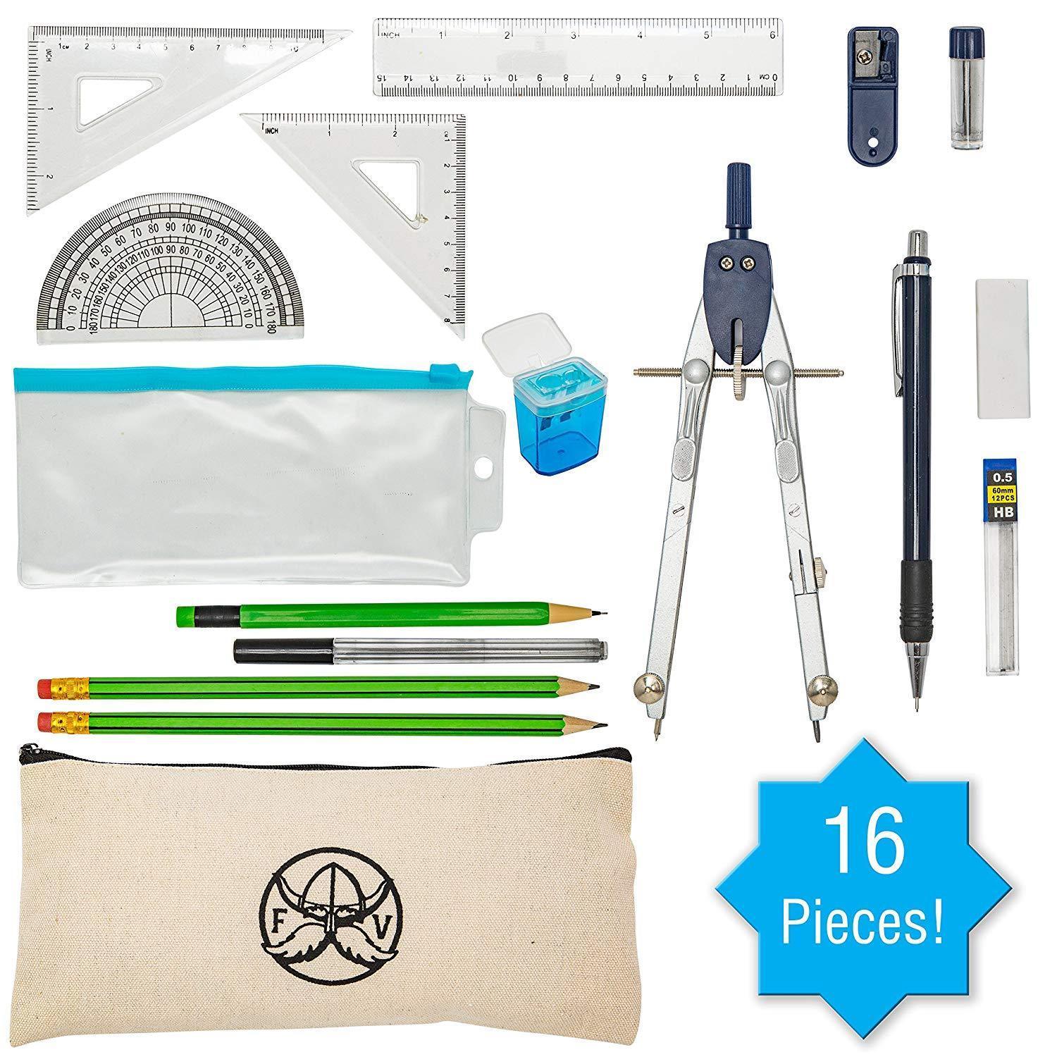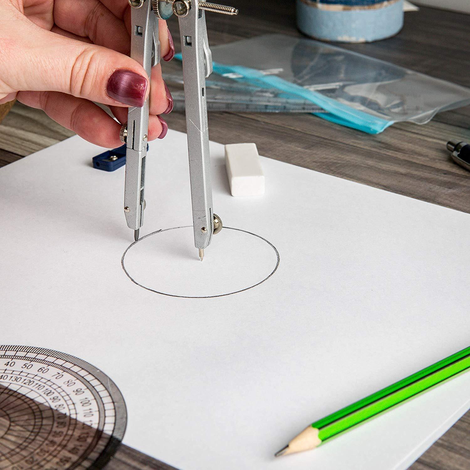Protractor and Compass Set with Ruler, Set Square, Protractor, Compass for Geometry, Pencils, Pencil Case, Mechanical Pencil, Pencil Sharpener, Eraser and Lead
