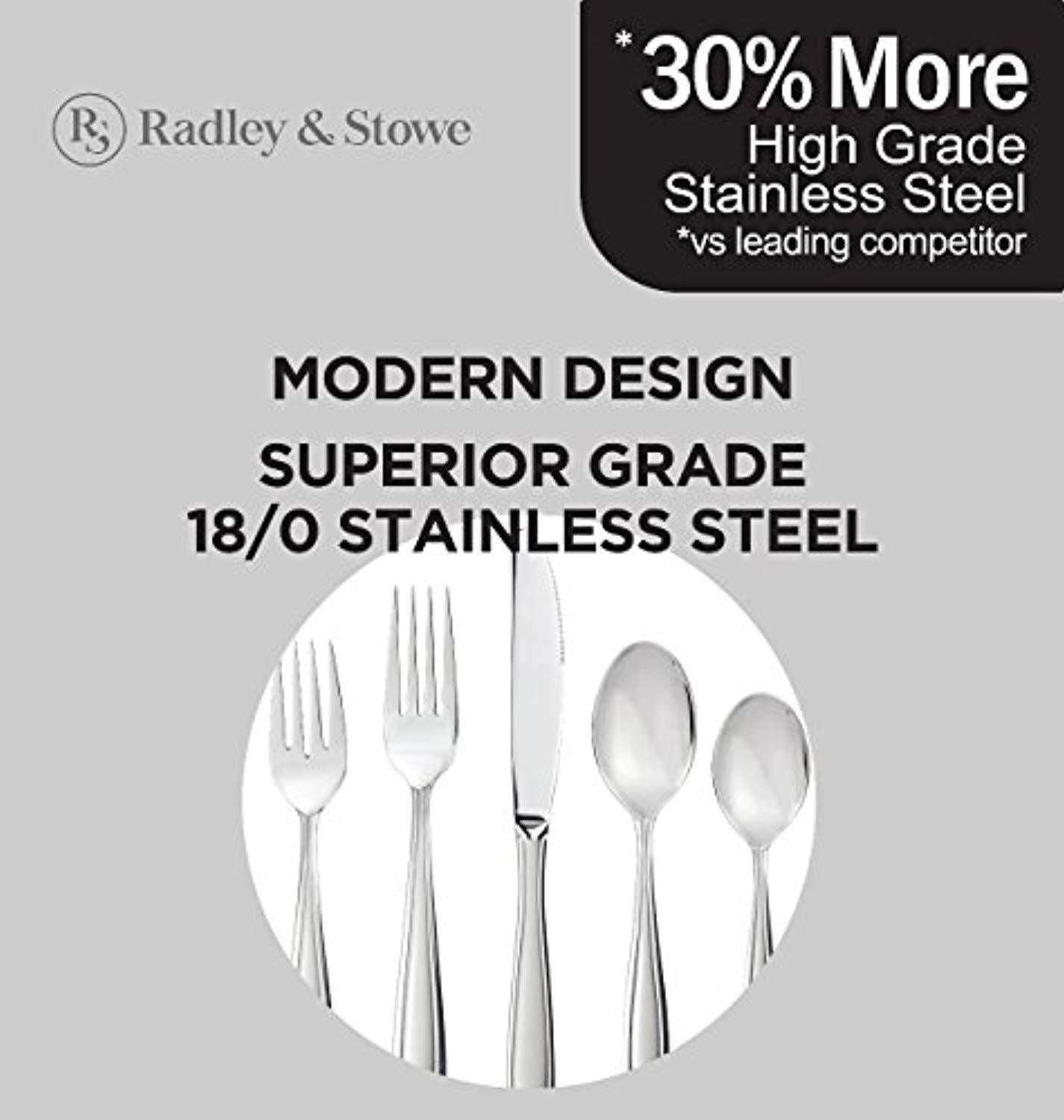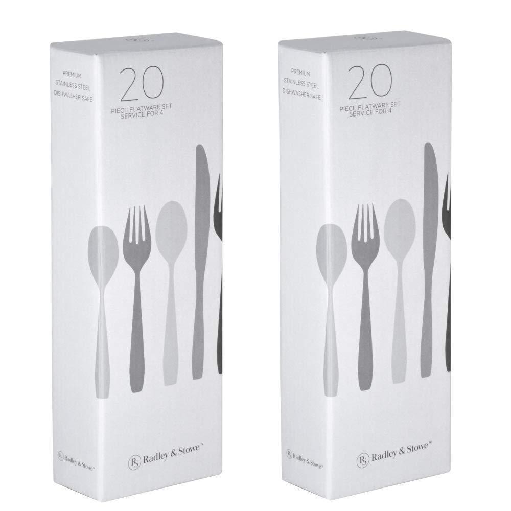Radley & Stowe 20-Piece Flatware Solid Stainless Steel Silverware Set (Designer Grade with Matte Finish Handle) (8-Set (40-piece))