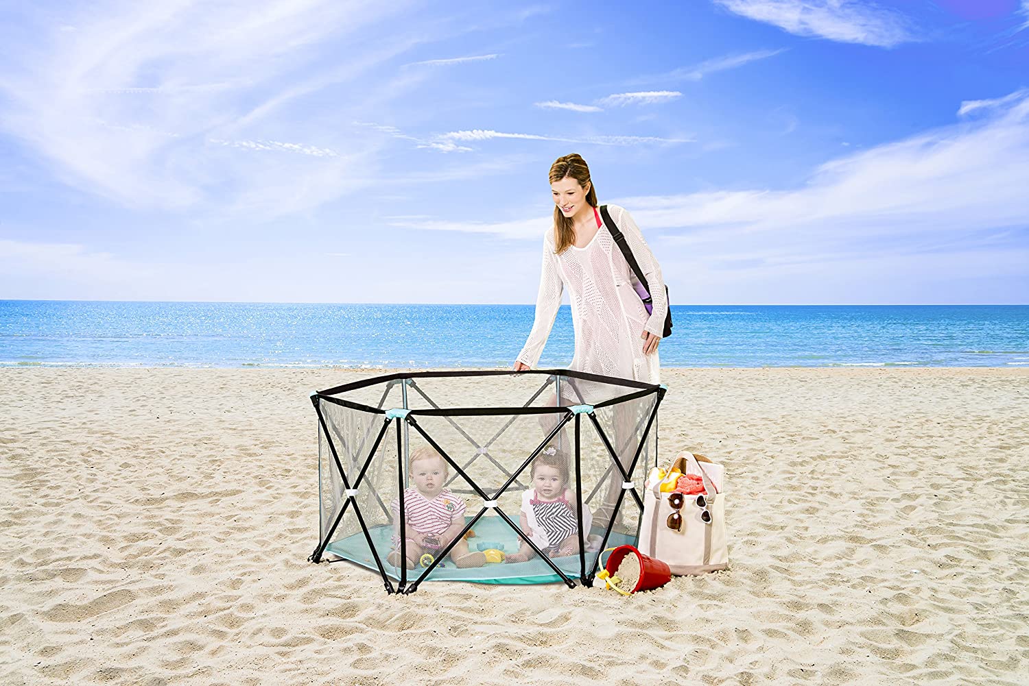Regalo My Play Portable Play Yard Indoor and Outdoor, Bonus Kit, Includes Carry Case, Washable, Aqua, 6-Panel