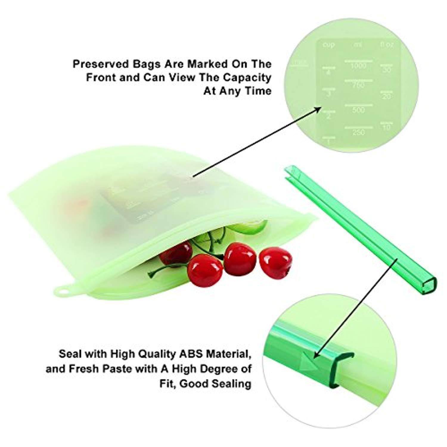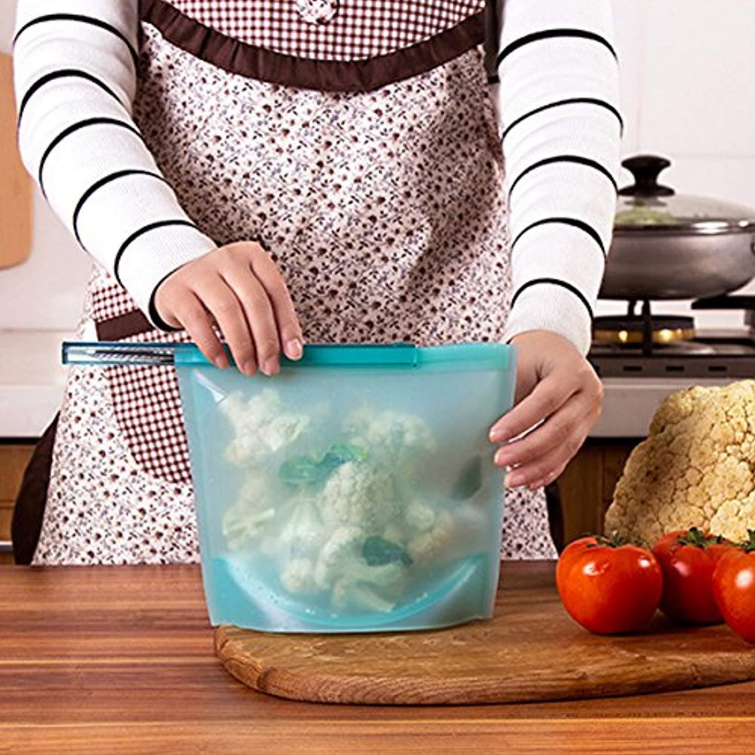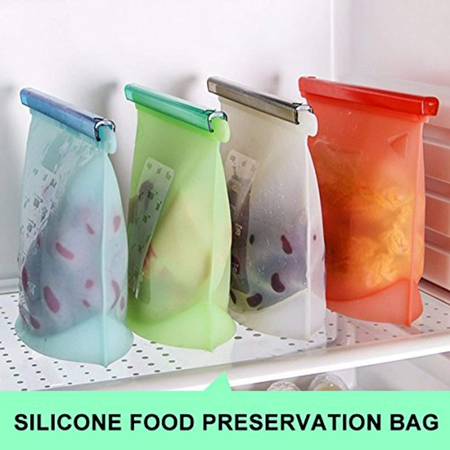Reusable Food Preservation Bags SiFree Silicone Storage Container Applicable with Refrigerator, Microwave Oven, Toaster Safe Airtight Seal Cooking Bag - 4 PCS