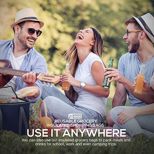 Reusable Grocery Insulated Shopping Bags - 2 Pack Extra Large Size, Collapsible & Foldable Heavy Duty Tote Bag with Durable Zipper and Handles