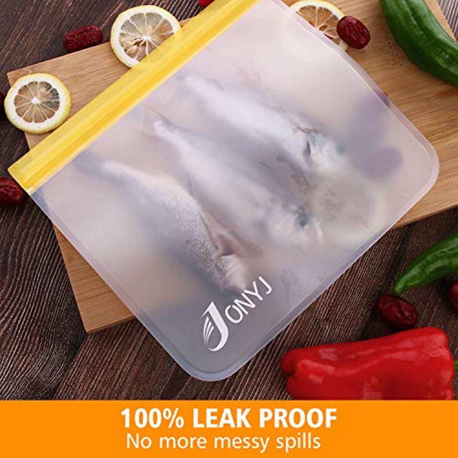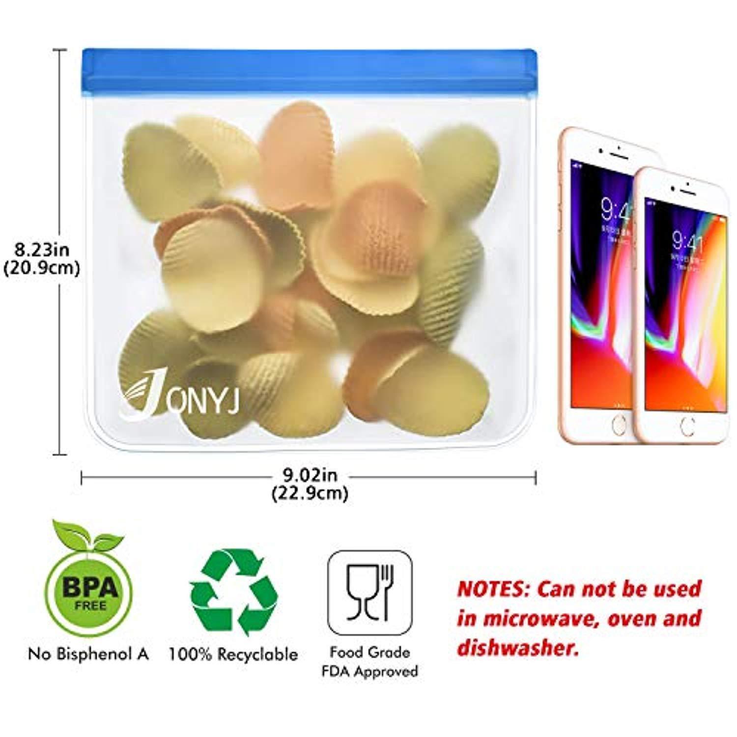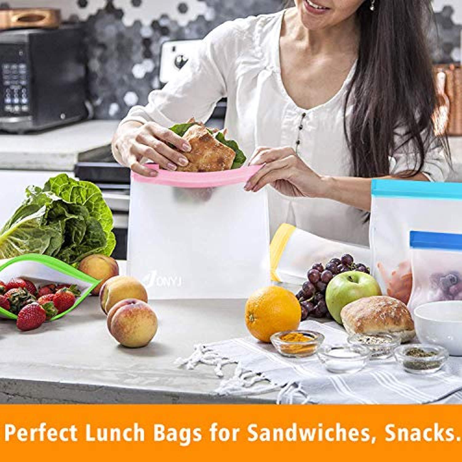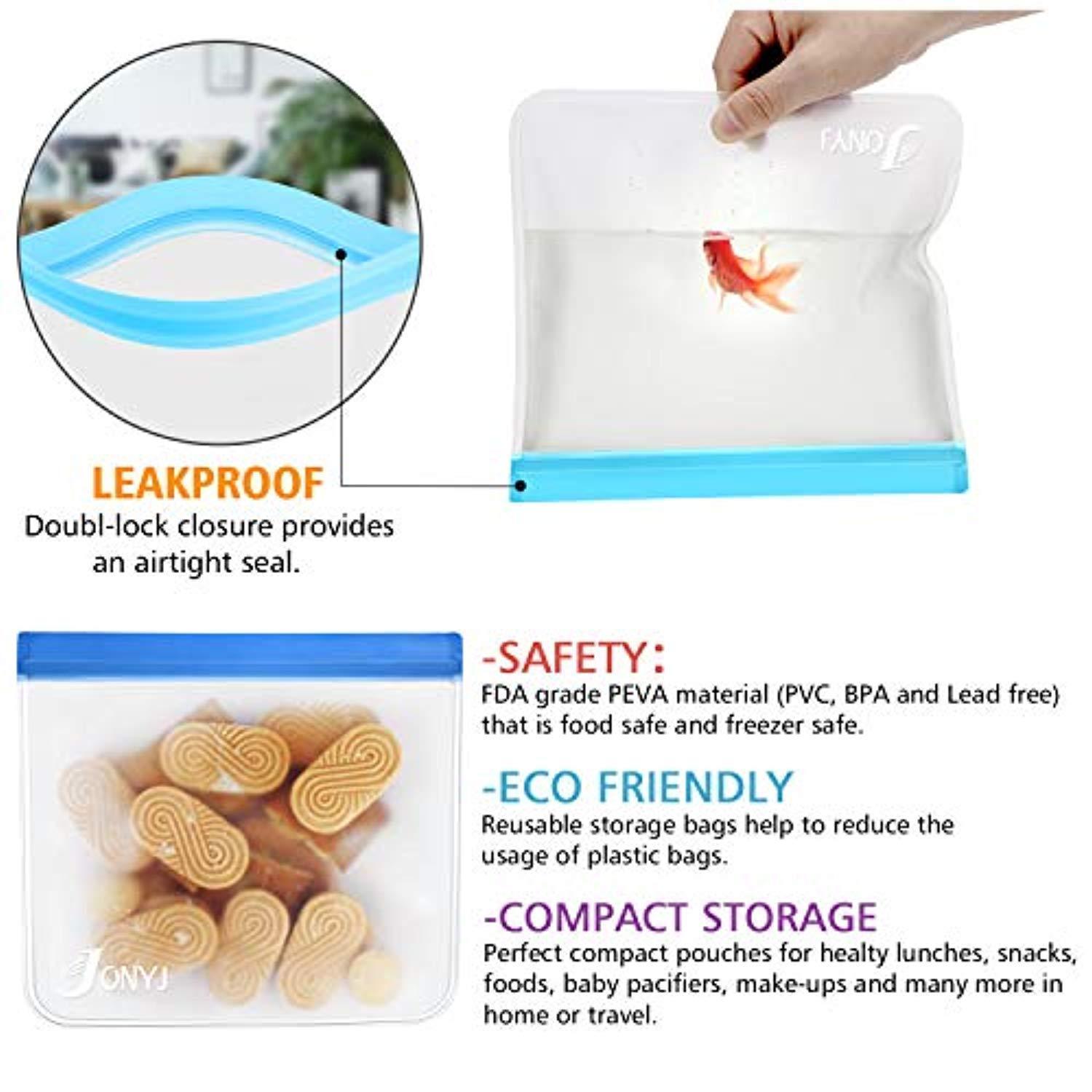 Reusable Sandwich Bags 6-Pack, JONYJ Leakproof Reusable Lunch Storage Bags, FDA Grade PEVA Kids Snack Bags, Extra Thick Ziplock Bags for Food Snacks, Make-up, Stationery, Travel Home Organization